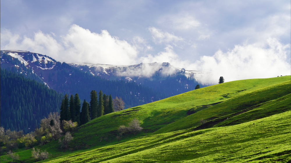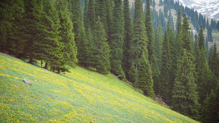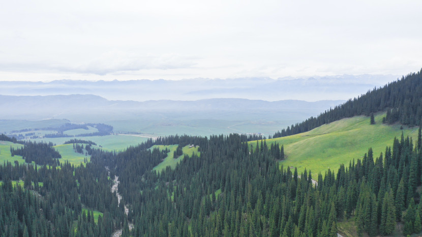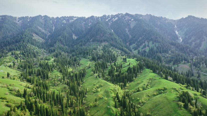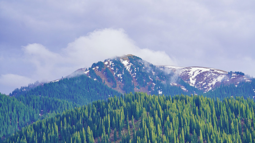密密麻麻的雪岭云杉生长在这里,这是一种天山山脉特有的杉树,高耸入云霄。