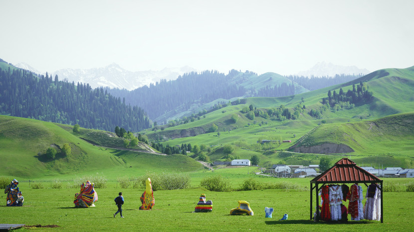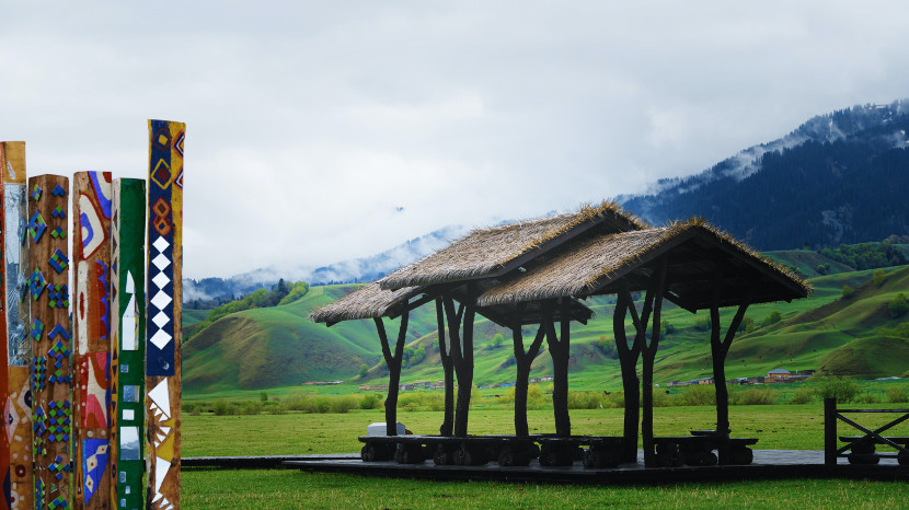 依提根赛是河谷草原重要的一站,这里是一处哈萨克牧民的小聚落,毡房(记得是毡房,不是帐篷)、民族服装、抓饭、果酱、奶茶……