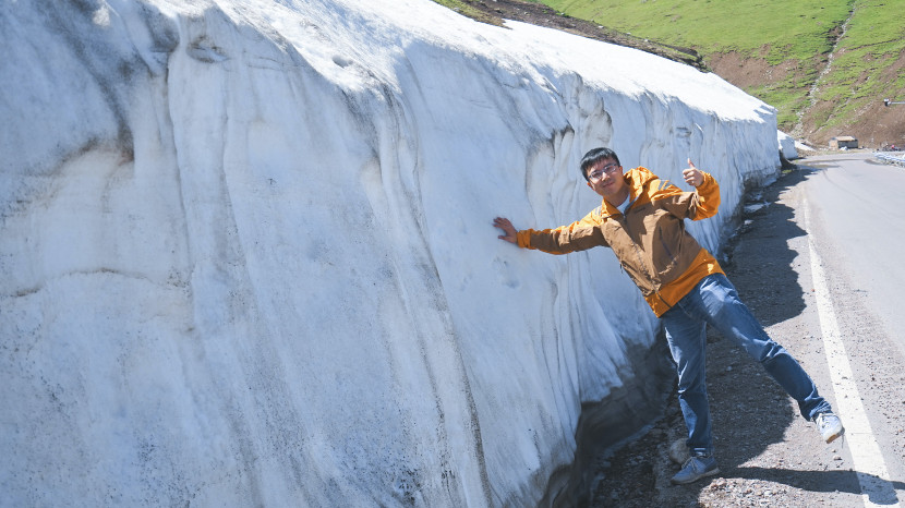 一路上,你很容易就能看到高于人头的雪墙,和绿树青草共存的场面。