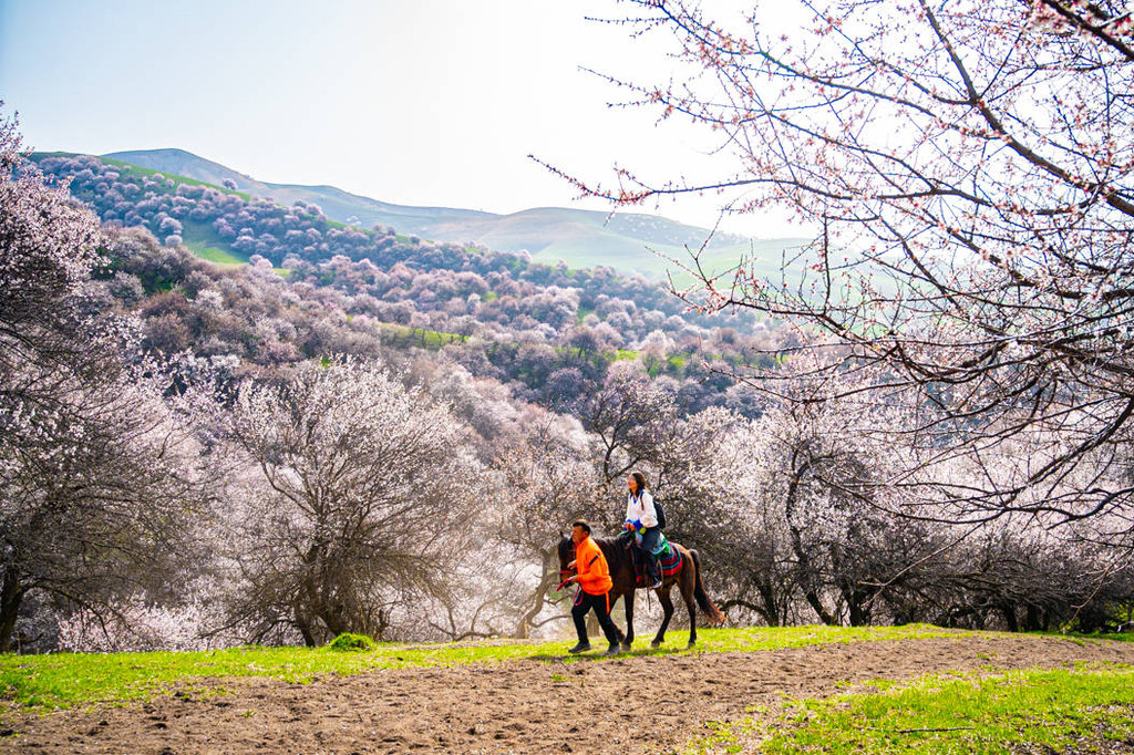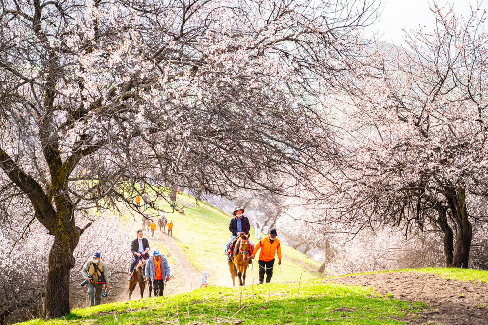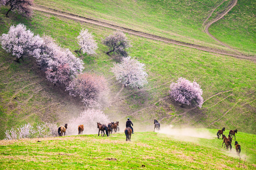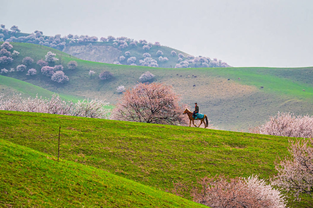杏花沟位于新疆伊犁新源县吐尔根乡,伊犁河谷阿吾拉勒山南麓,受伊犁盆地整体气候环境的影响,这里气候湿润,水汽充沛,南向敞开的马蹄形谷地,屏蔽了西北向的山风,揽抱着来自东南方的充裕的阳光,形成一个半封闭的小环境,适合杏花生长。素有天马故乡之称的伊犁,在天山脚下的杏花沟骑马,穿越于春天的草原与花丛,是不是有一种刚柔并济之美。