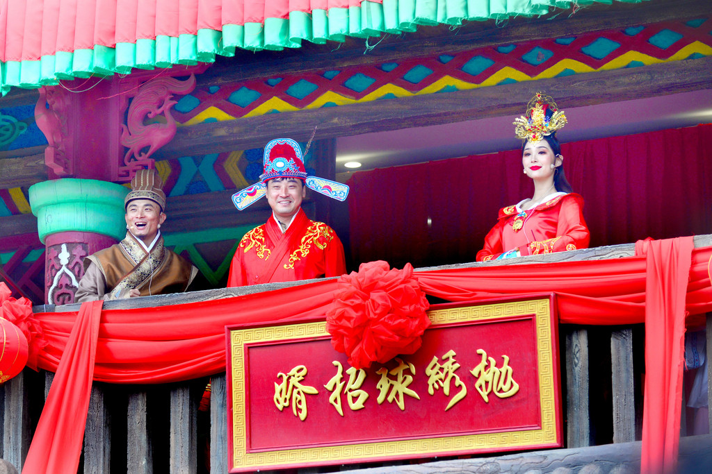 穿过雪月街来到彩楼广场,员外正在绣楼上为小姐抛球招婿。小姐左顾右盼,含情脉脉的对意中人抛下了彩球。中了彩头的这哥们倒也憨厚,待丈母娘交代一番“三从四德”后牵得美人归。但愿人长久,千里共婵娟。
