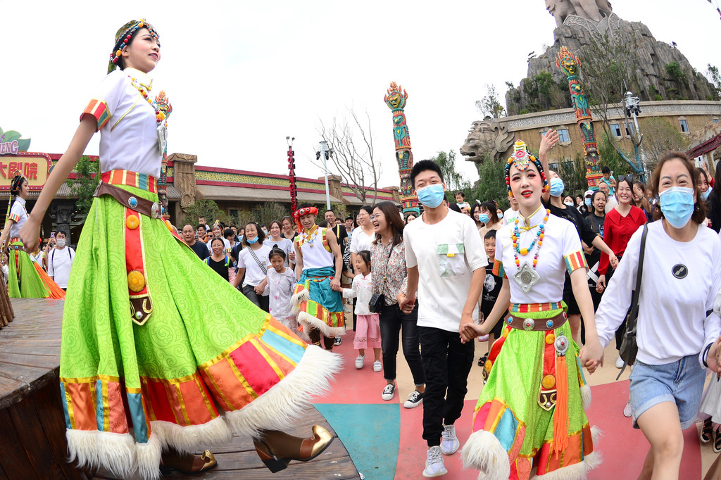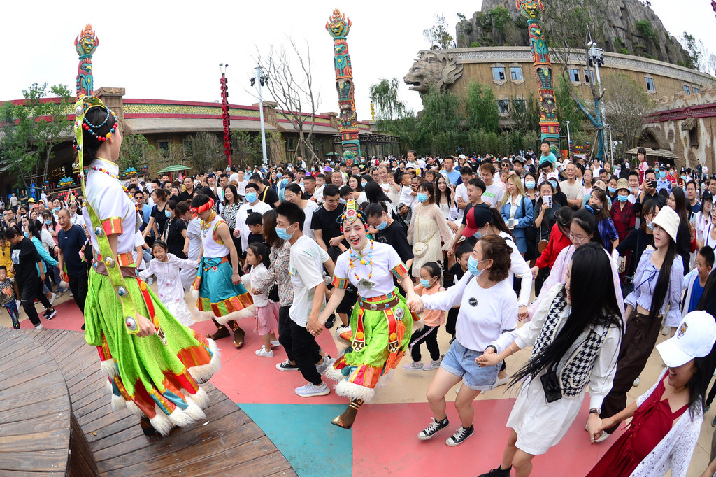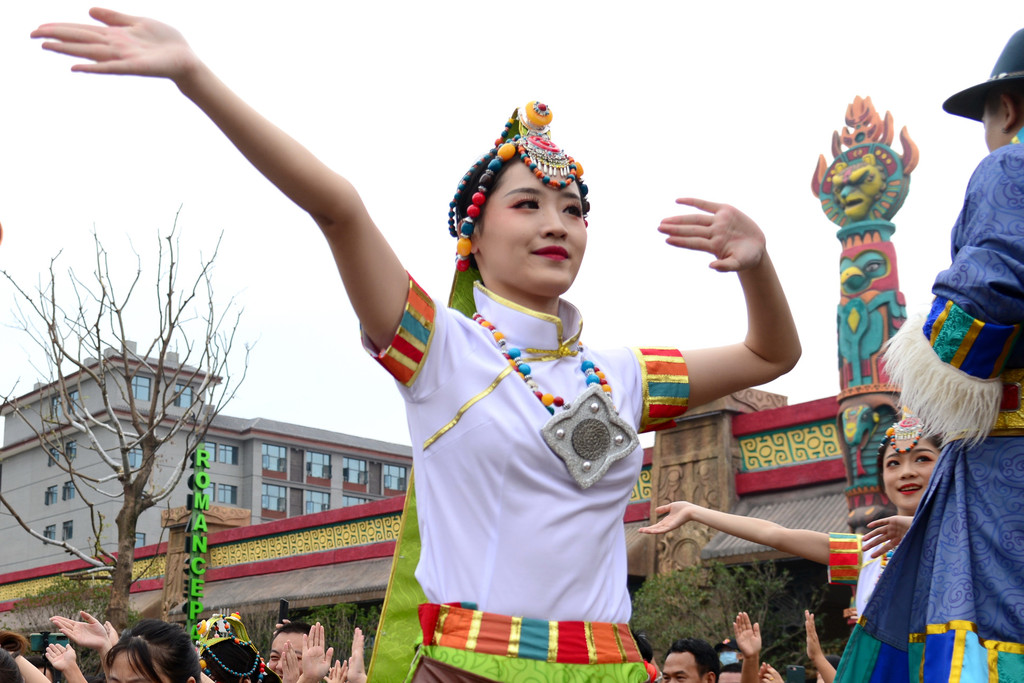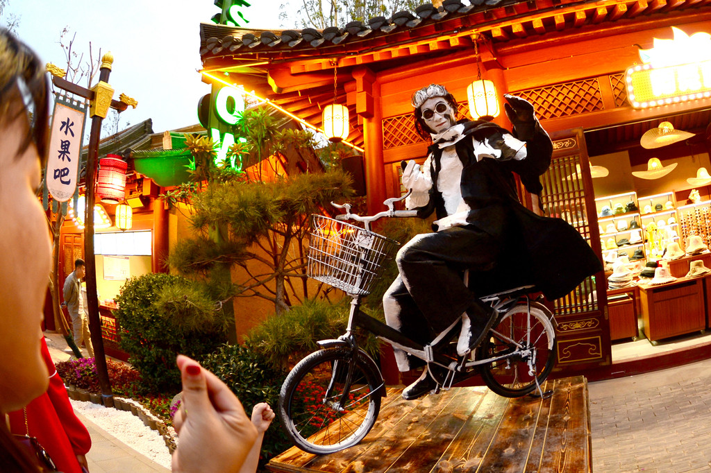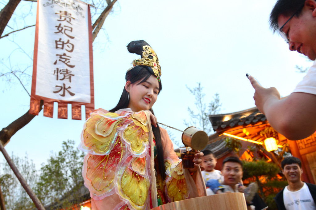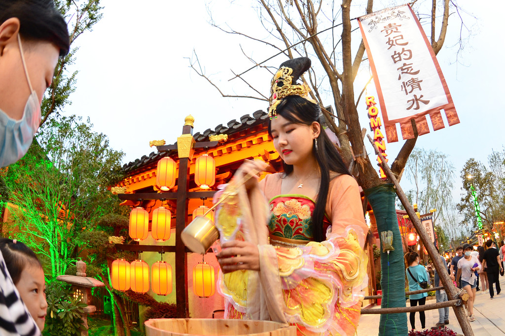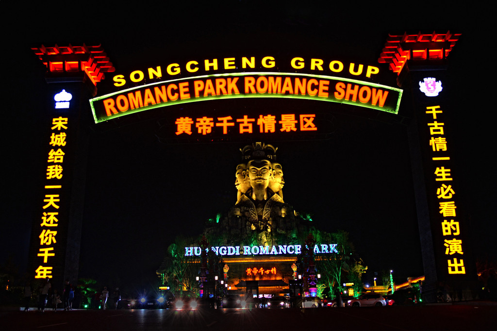 时近黄昏,夜色给《黄帝千古情》园区蒙上一层神秘的色彩,风花雪月街的人群摩肩接踵,广场上看杂技的人们围的风雨不透。“鬼屋”前挤满探秘的人;贵妃娘娘送上了“忘情水”......曲已终人未散,《黄帝千古情》再见!