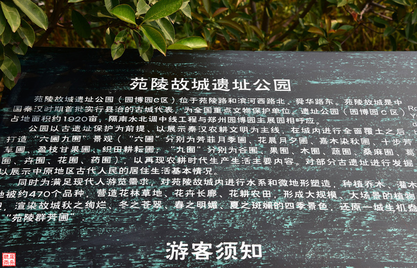 苑陵,公元前秦朝的苑陵县,现在的苑陵故城遗址。这里是秦汉时代的城市,这里是东魏时期的战场,这里是之后的废墟,这里是国家重点文物保护单位。苑陵县毁灭后,这里隶属于新郑县,现在隶属于郑州航空港区,这里是郑州园博园的C区------郑州苑陵故城遗址公园,和园博园主展区相隔一条南水北调干渠。相比A区令人吐槽的60元门票,这里不收门票,这里也不收停车费。