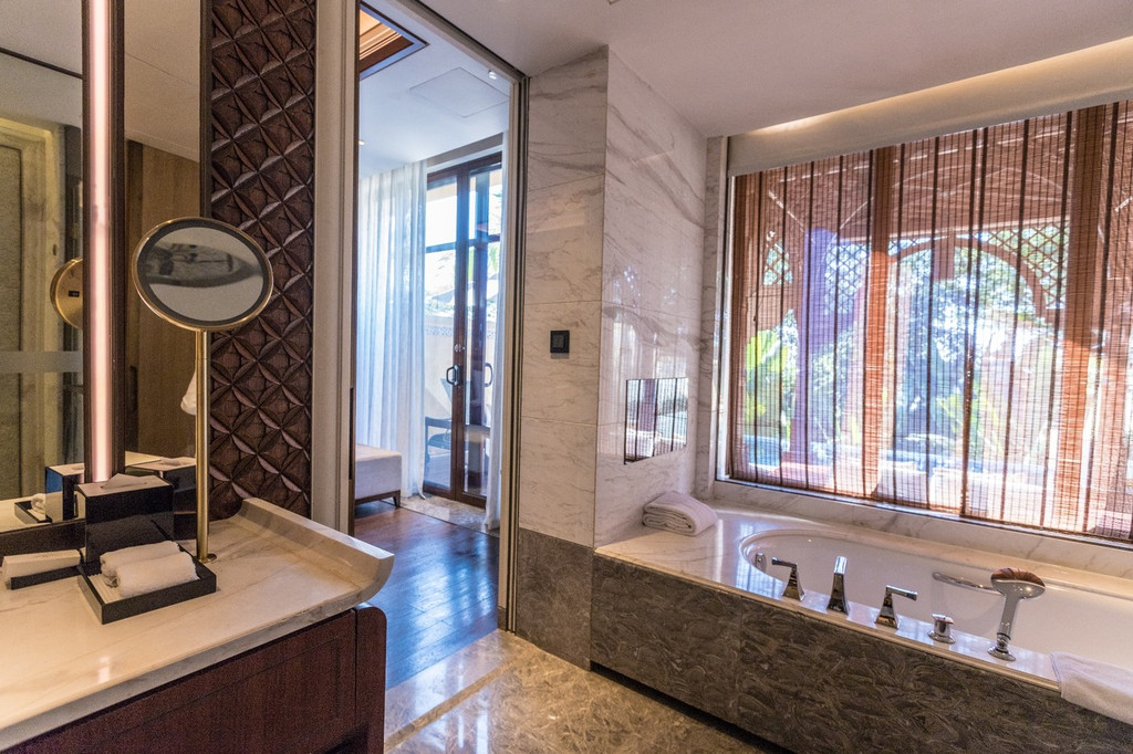 如果一定要三家酒店分出比一样的感觉,那么万达文华的综合颜值是最高的。顶着首家万达文华度假品牌的酒店,占据了整个度假区最深处、制高点的位置,全别墅的客房刷新了版纳平均客房面积,交出完美的答卷。