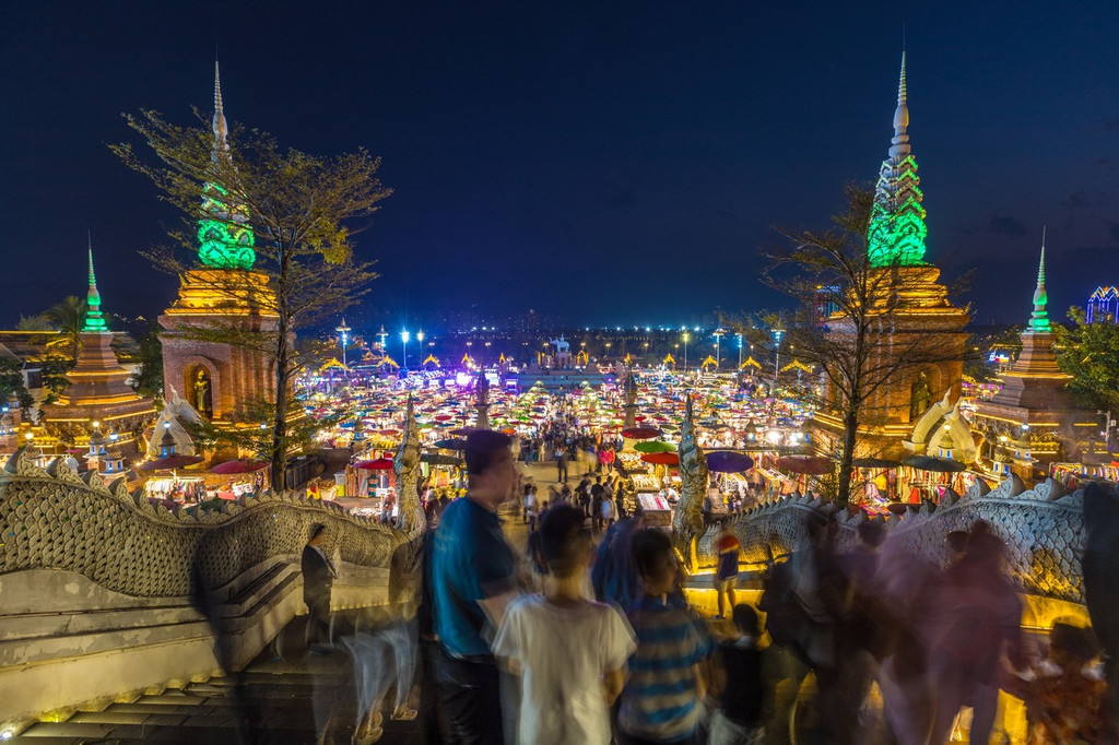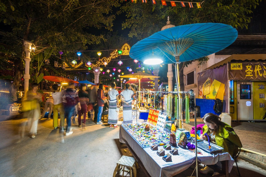星光夜市很美,夜幕降临,灯光闪烁,形成几条星光璀璨的街市,一如水母发光的触须,延伸向远方,在夜色里暗自美丽。湄公河星光夜市集结了我国云南、泰国、老挝、越南、柬埔寨等各地的创意摊贩,各种具有创意的手工艺品是游人的最爱。在这里你可以真实感受到湄公河流域的赶摆文化。