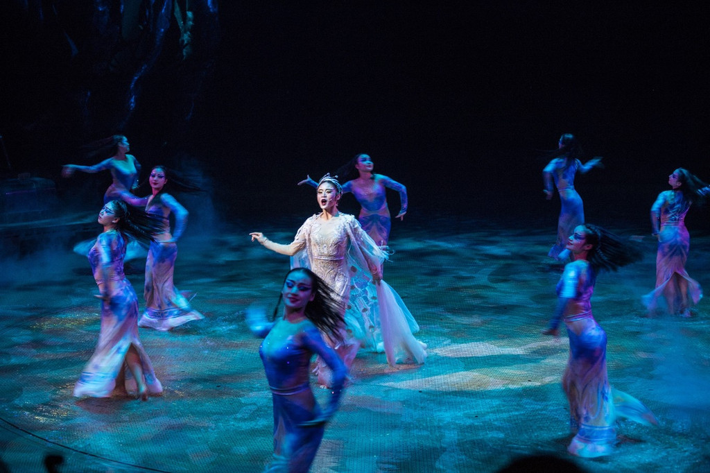 尤为值得一提的是舞台,充分融入了傣家水文化,把数米深的“池子”直接搬到了剧场中央。也因此,跳水等技艺,泼水等民族文化才能生动呈现。