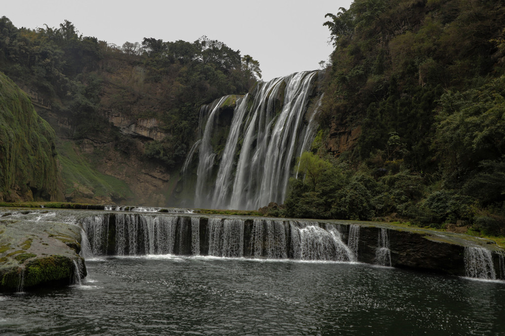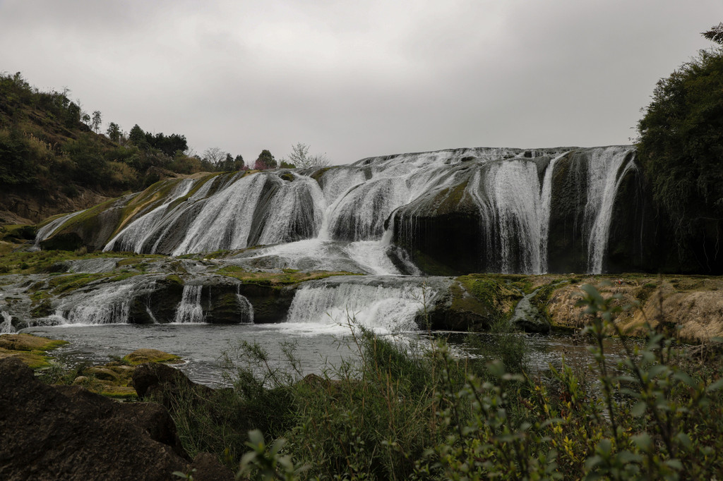 第七天3月4日 黄果树瀑布景区分三个景点,天星桥、陡坡塘、大瀑布,成年人门票加园内游览车220元,两天有效。天星桥景区最远也最大,里面的山石瀑布都很有特色,在著名的银链坠瀑布前,为了拍照我爬到一块大石头上,不小心滑倒摔了下来,吓了我家老头和周围的游客一跳,有热心的小伙子想上前来搀扶,因我腰部做过手术,不敢让别人拉拽,谢过热心人,在地上躺了一会,自己才慢慢爬了起来,甚是狼狈。好在摔下来的时候,把相机护的很好,仰面倒下的,后面背的双肩包替我缓冲了一下,就左臂受了点伤。在天星桥只有水上石林因维修没看到。用了三个多小时游览完的。