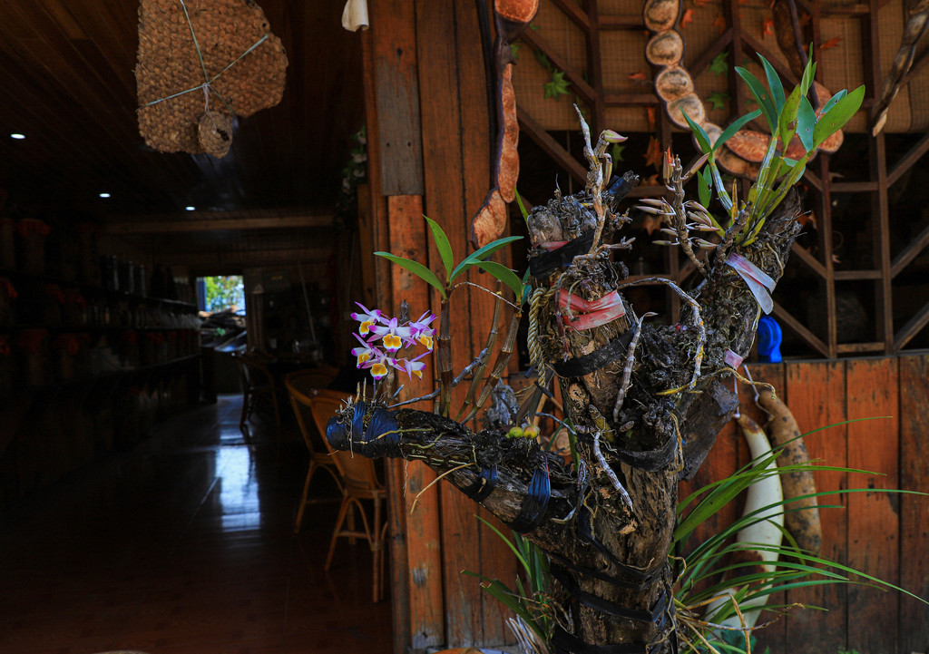 到了傣族园门票45元每人。电瓶车另收费。园内主要有几个傣族的寨子,都有当地人居住。傣族的房子都是一层是空的能停汽车,二楼是正常房间,楼梯都在屋子中央。每户人家基本上都成了民宿饭店。院内全是鲜花和多肉植物非常好看。