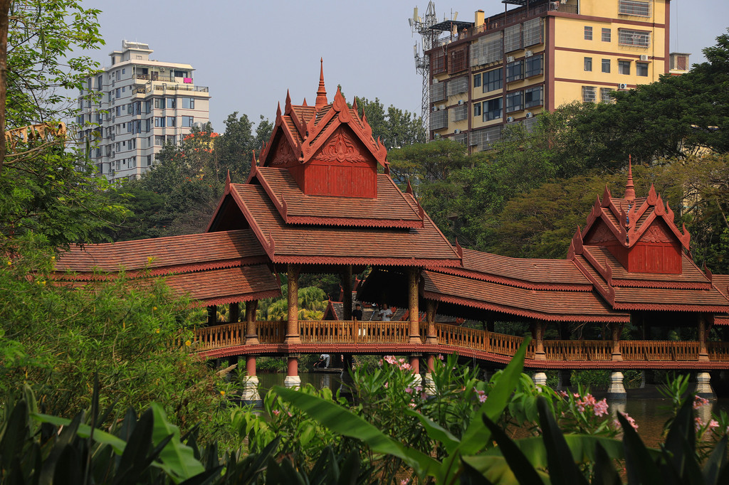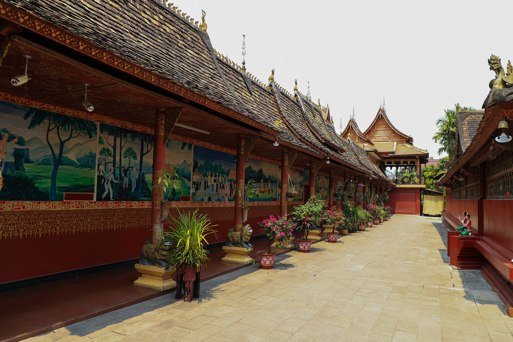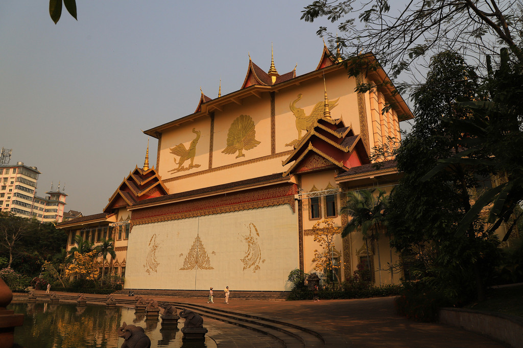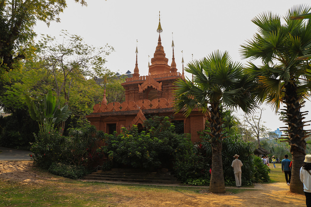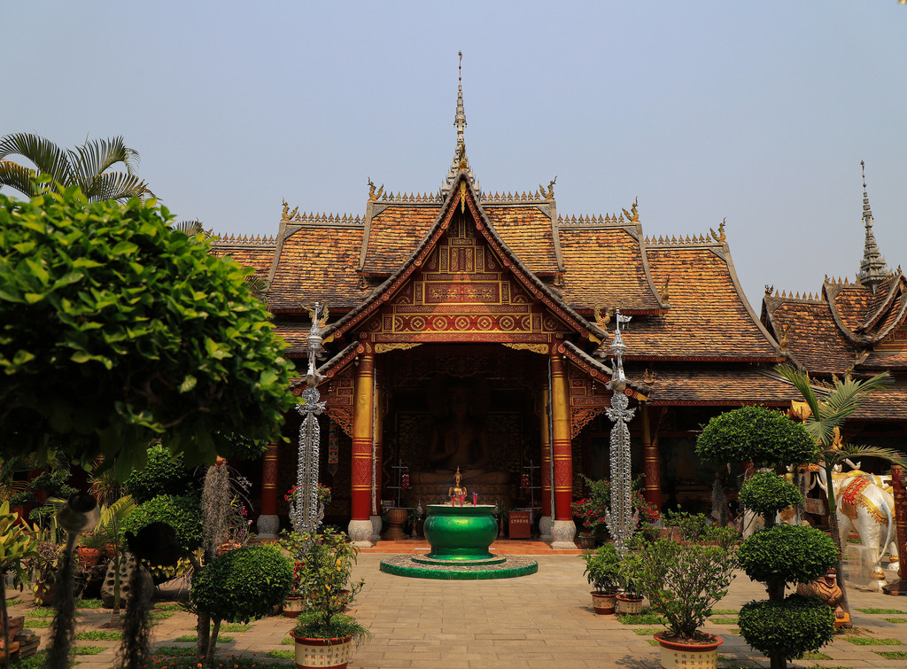 第十八天3月15日我家那位今天不想动,自己骑共享电动车到了曼听公园。公园面积不是很大,建筑和花木都很美。少女们身着傣族服装,大妈们长裙和纱巾挥舞,占领着每幢建筑的前后左右。曼听公园的侧门连着总佛寺,没出国门就像到了缅甸和泰国。