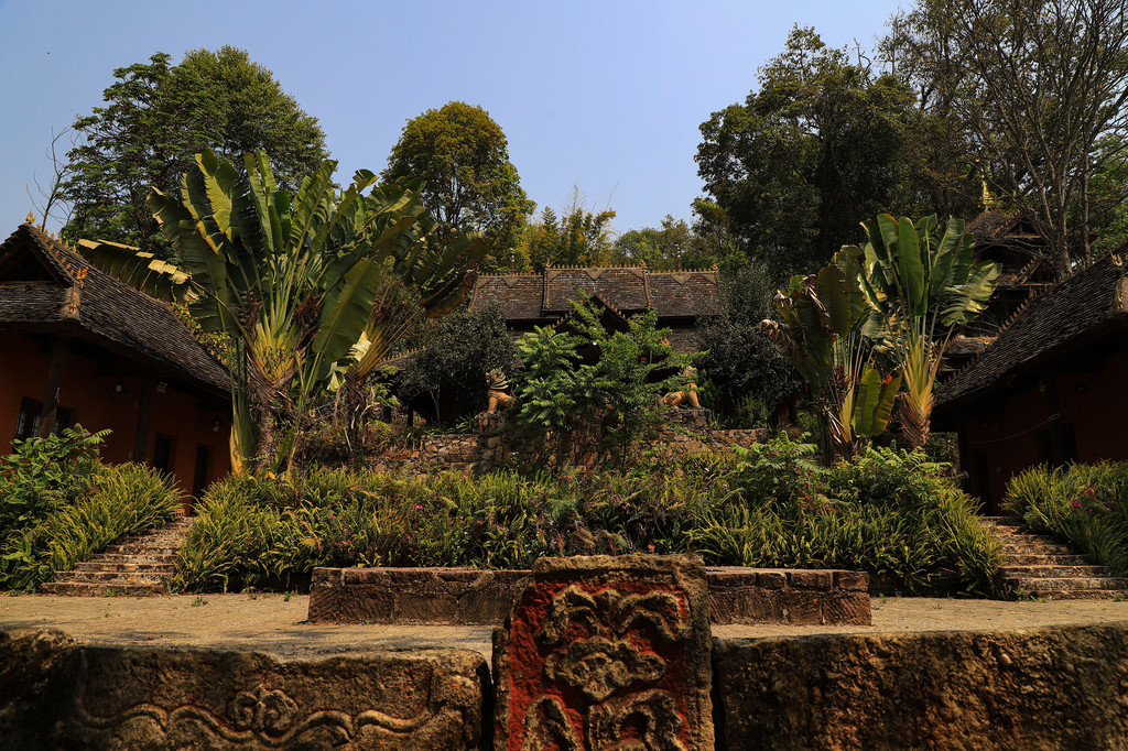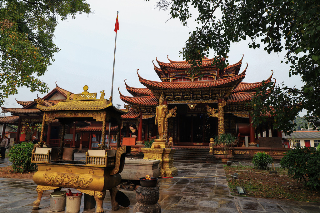 第22天3月19日一大早起来,告别了检查点的警官和边防武警。就是想晚起都不行,游客中心的经营者们,早上六点就开始摆摊了。大巴车拉着游客七点钟就到了。要在这里安检。从中心这里顺着320省道,开车二十分钟就到景真八角亭。就一个小寺院,院中有一八角亭。别看寺院不大,在佛教界的地位可不低。位置有点偏,如果不是自驾游,应该看不到。我们进去参观,一个游客也没有。只有一位师父在扫地。