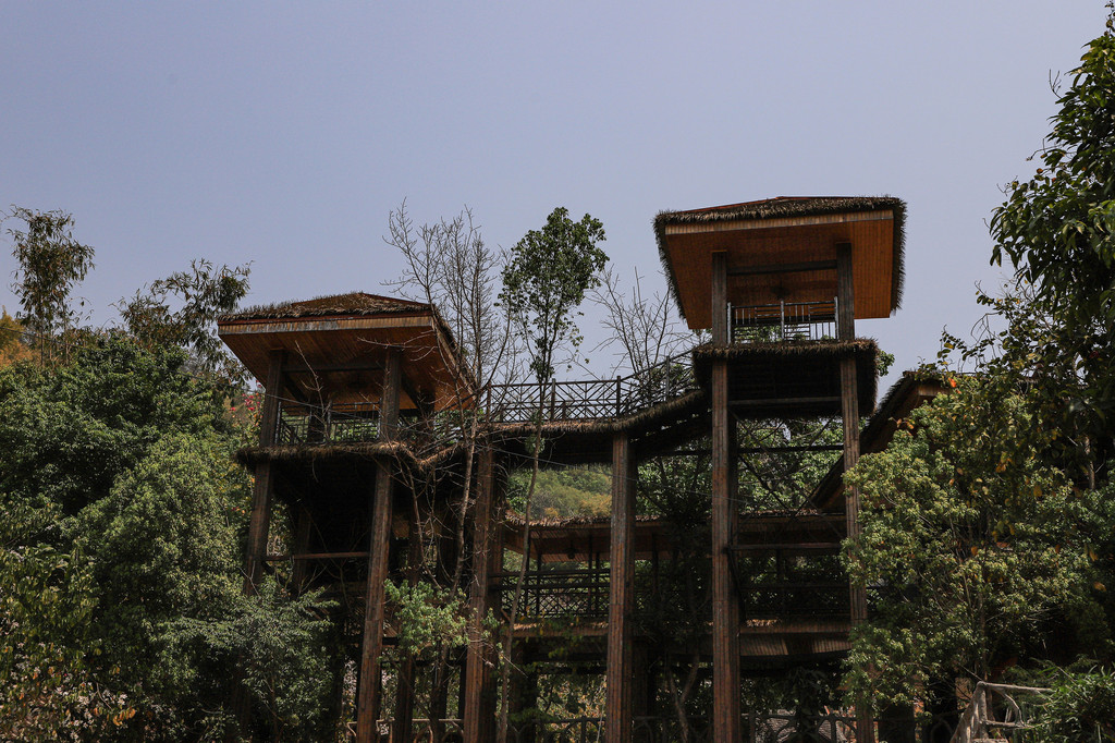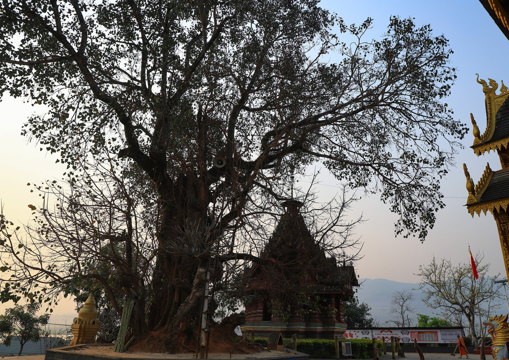 第二十五天3月22日勐卧总佛寺离我们驻车的文体广场很近,开车也就五六分钟。寺庙不大,特别有名。内有双塔,一个塔包树,一个树包塔。我们到的时候,寺里的工作人员在修理树枝。塔包树的几根枝条被虫子蛀空了,安全起见要先清理掉。参观完总佛寺,离开景谷县,经镇沅县到哀牢山自然风景区。