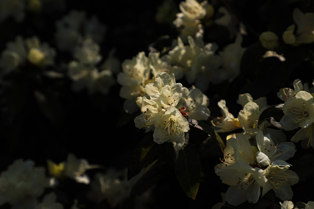 第二十七天3月24日 磨盘山国家森林公园,门票四十元,女同志因三八妇女节月底之前免票,园内观光车分段收费,到圣火台四十每人,到敌军山七十每人含圣火台。我们要去敌军山看百亩杜鹃。司机师父姓柏很热情,游客也不多当时车上也就我俩,送到敌军山下大概用了四十分钟左右。告诉我们沿山脊走环线2.6公里大概两个多小时,问体力能不能行,得到肯定回答,就留下电话号码等下山打电话再来接我们。敌军山是风景区里最远的地方,一进山林就被盛开的杜鹃花给镇住了,千年野生杜鹃,树干粗大,枝头开满杜鹃花,枝干长满青苔,色彩斑斓。这个时间点来磨盘山多少有点尴尬,马缨花刚刚落败,地面上还能看到落花一片片,杜鹃花还没到盛花期,看不到漫山遍野的映山红。但我们已经很满足了,千年野生杜鹃可能只有在这里才能看的到吧。顺着山脊绕到山背面时,还看到一大片山茶花,和映山红混在一起,红的白的煞是好看。刚上山时还有浓雾,一时清楚一时朦胧,等到了十一点多云开雾散,今天算是我们到云南以来第一次真正意义上的蓝天白云了。