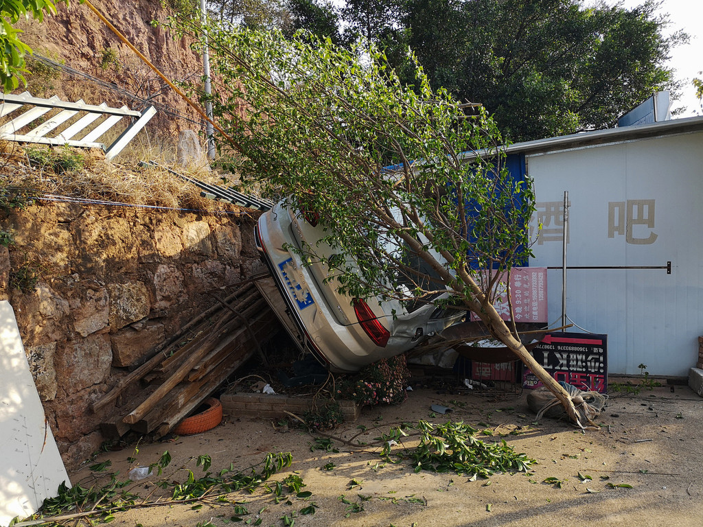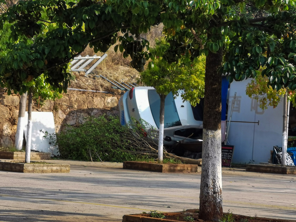 西岸金滩有椰林沙滩,去孤岛的游船,早上还能拍日出,简直就是超级无敌海景房。停车十二小时十元,超过一天二十元,感觉很不错。和停车场看门大哥聊会天,刚刚上车躺下,大概九点就听到外面很大的撞击声,我家那位打开车门一看,说出事了要去救人,在我们停车场左后方从上方马路扎下一辆汽车,侧翻夹在高墙和棚屋之间,我老头爬上车大声喊话,有人吗没事吧。万幸司机没受伤,自己从车窗爬了出来,说是为躲路上的小狗,急打方向冲下了路基,亏的路基不是很高,而且下面是停车场,如果是湖边那就太危险了。