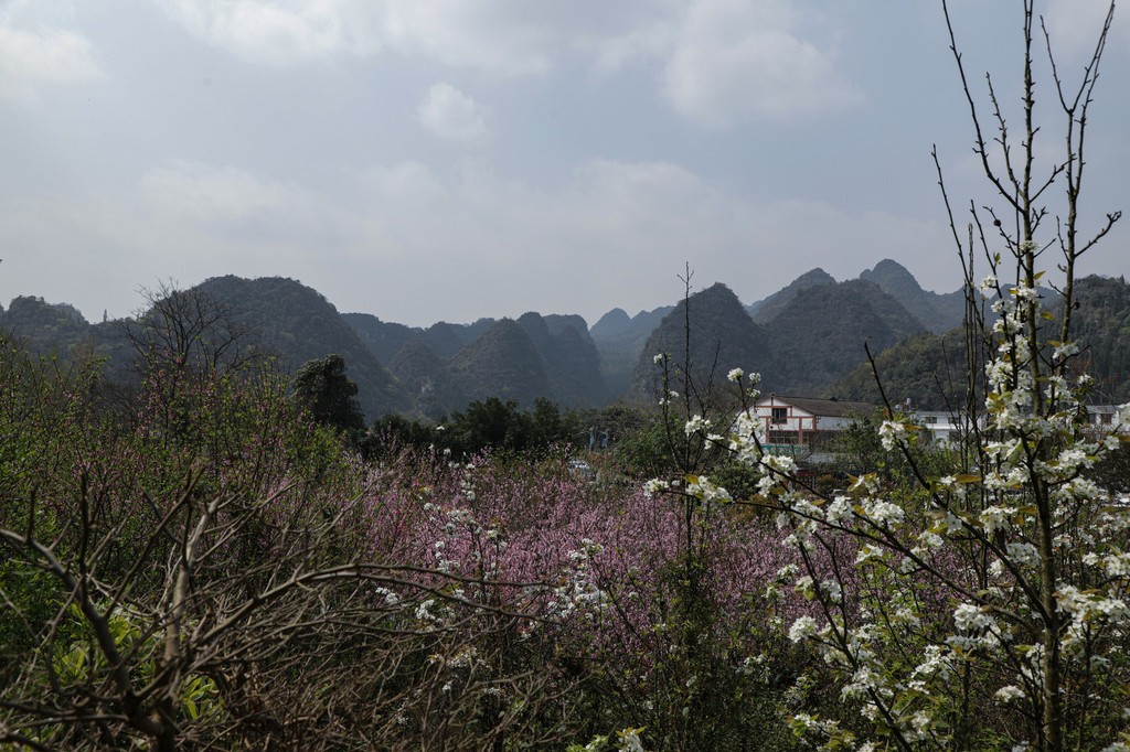 第四天3月1日 在杭瑞高速,雨断断续续的下,五点多到了贵州贵定县盘江镇的金海雪山。景区挺大的免门票,可能太晚了又阴天下雨,没什么游客。金海雪山并不是现实意义的雪山,是因大片油菜花和漫山盛开白似雪的梨花而得名。今天贵定特别冷,本来想去找宾馆入住,从停车场出来发现一住宿吃饭的农家乐,看着还行要价120元,还到100元住下了。觉得明天起来不用挪车就可以去景区了,住下后发现不是一般的差劲,房间本身就不大,卫生间里什么用品也没有,包括厕纸。被子很潮,空调噪音大并且制热效果不好,这次住的地方是自我们自驾游这几年遇到的最差的地方,算是一次教训,以后绝对不能找这种在景区门口吃饭加住宿的地方了