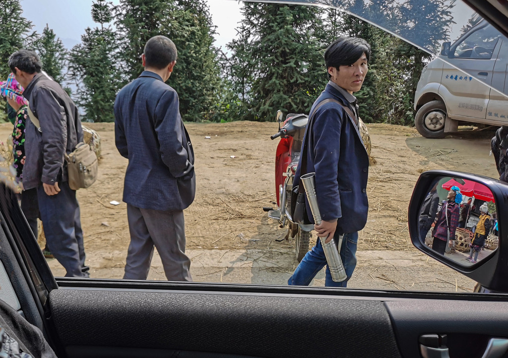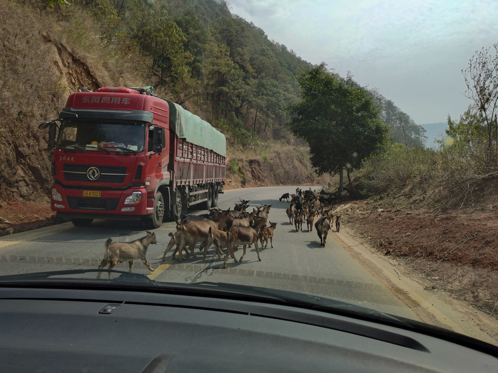 镇沅县城很干净,看着比景谷县小点,出了县城道路就开始颠簸,好像修什么交通枢纽,颠了几公里好了,没过十几公里,有开始了,不是小颠成了大坑小坑了,得有二十几公里长,原来是修云南墨临高速。好容易走过来,离目的地还有17.6公里处又修路,所有车辆禁止通行,要等六点之后才能通行。当时是下午四点,到六点天都要黑了,本来就阴天看着要下雨的样子,那时再跑山路就太危险了。问了当地人,往回返几公里有一条到各个寨子的小路,可以绕过修路的地段,赶紧调头,小路实在是太窄了,对向会车,都得有一方找个稍宽的地方避让。好在我们一路上让过四辆车后,总算有惊无险的回到323国道上。