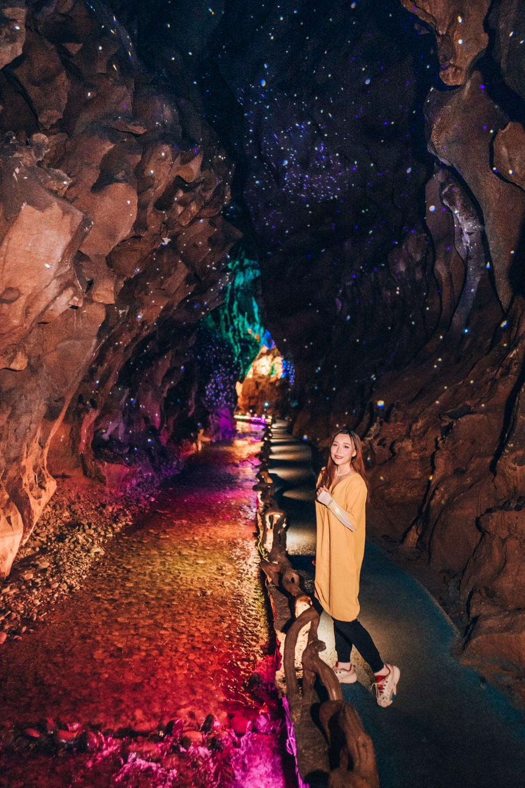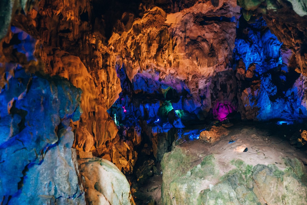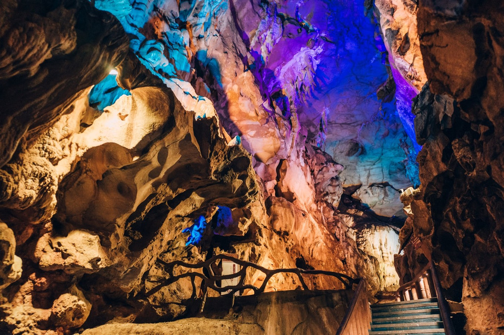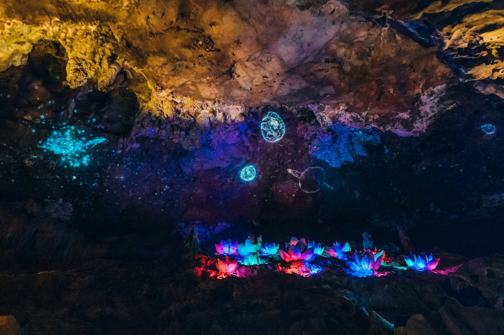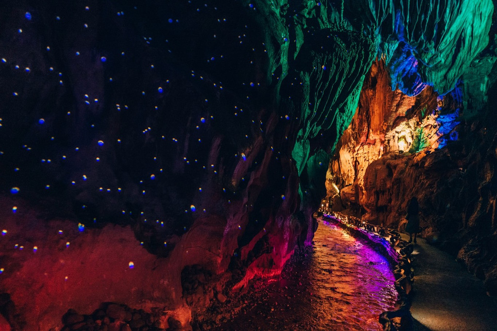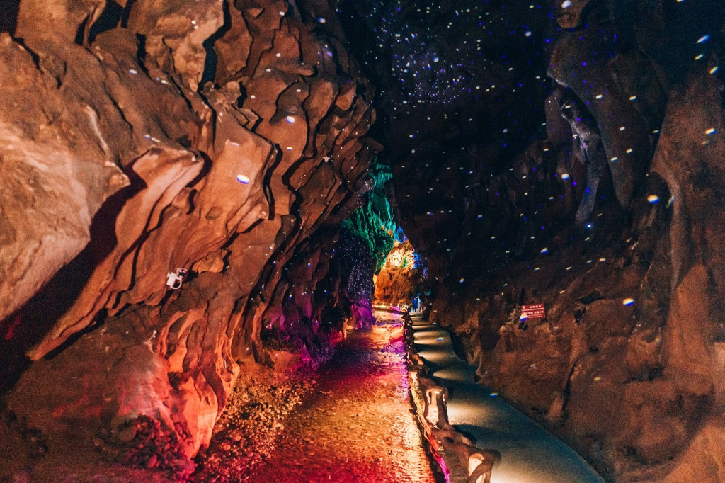 星河梦影、灵洞雨林、斗牛宫、沧海遗珠、萤舞映月,时空梦境里的每一景观都如梦似幻。如果要拍照的话记得带上闪光灯,在这里千奇百怪的原始的溶洞景观与绚烂多彩的灯光结合,如梦似幻,仿佛置身幻境之中。