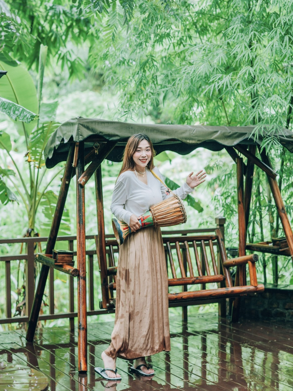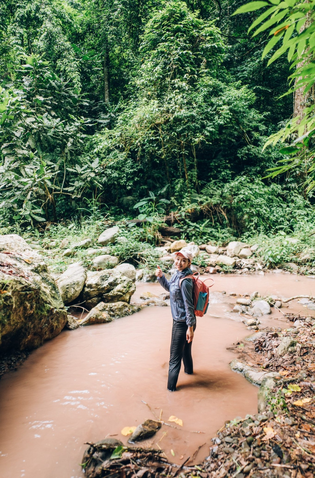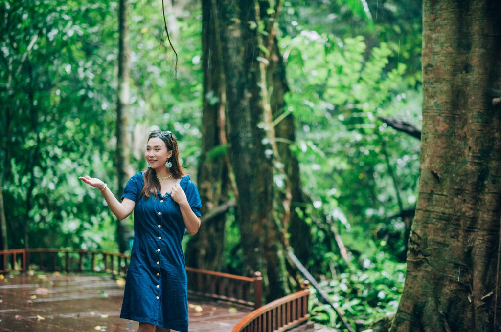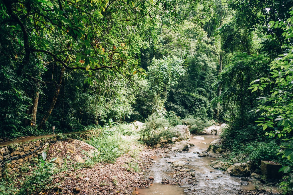 你可以按照门票推荐的游览路线徒步游园,也可以深入探索溯溪雨林,在徒步穿越雨林之前,换上景区提供的解放鞋(25元)就可以跟着向导出发啦!我们一路走过泥泞的山路,跨过深浅不一的河水,从倒下的 大树 下面钻过,一路趣味十足冒险感满满,有一种跟着贝尔去探险的心情。