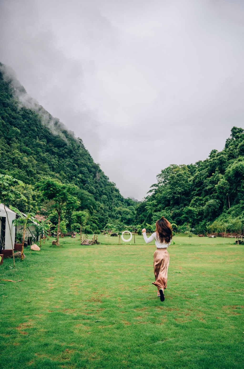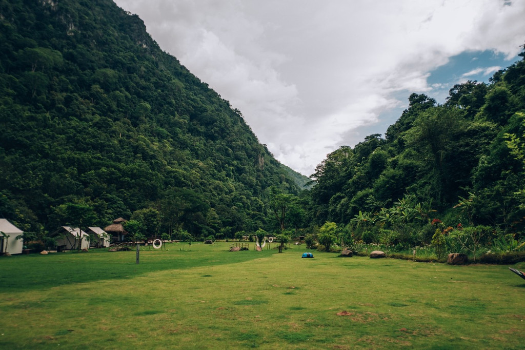 星空营地坐落在勐远仙境野牛峡谷,四面环山,位于金山、 银山 之中,被雨林环抱,勐远河从中穿过。星空营地草坪占地7000平米,可搭建露营帐篷200顶,一次性可容纳500人露营。可以住这里的帐篷也可以自带,这里工作人员很负责基本随叫随到,经验丰富安全意识很强,注意住帐篷关紧拉链避免蚊虫飞蛾等小生物进入,浴室、洗手间、餐厅都是公用的在户外。