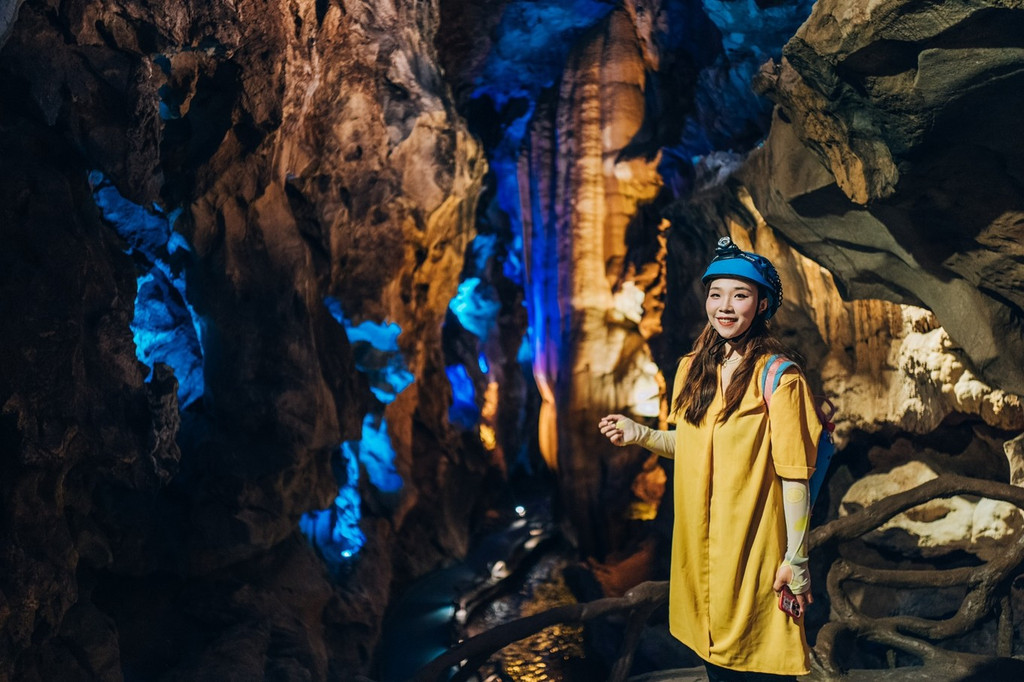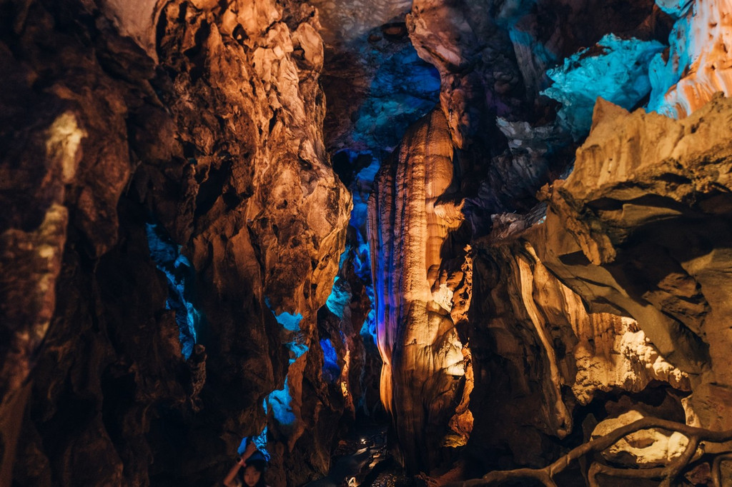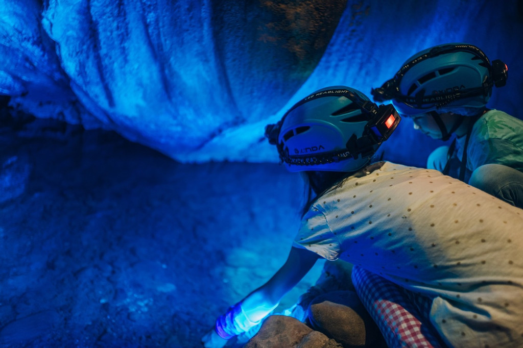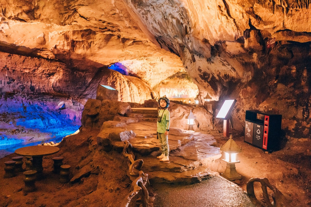 在景区中,还有观光之外的一场冒险,我们去没有开发成景区的原始溶洞冒险,向导开路,飞舞的蝙蝠和未知的洞穴生物,四周没有任何灯光,只有队员互相的头灯,窄的地方需要一个人爬过,宽敞的地方甚至可以跳广场舞,有趣至极。
