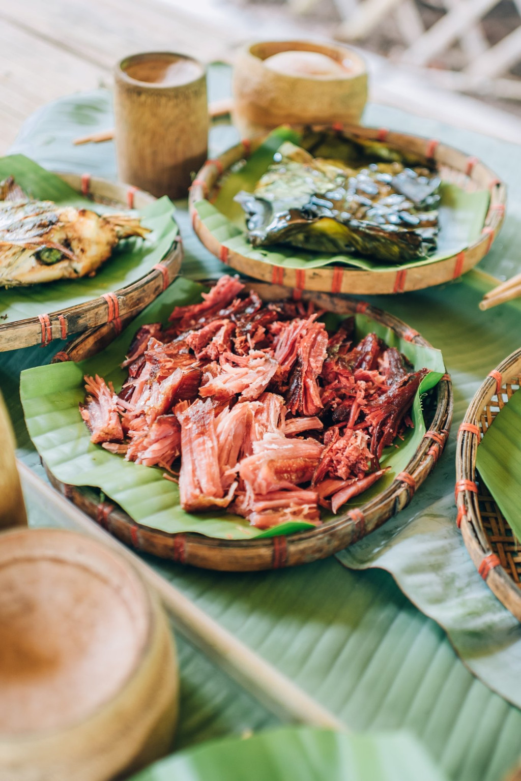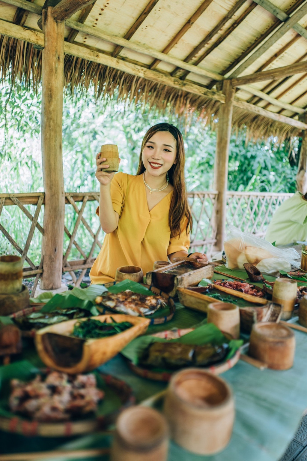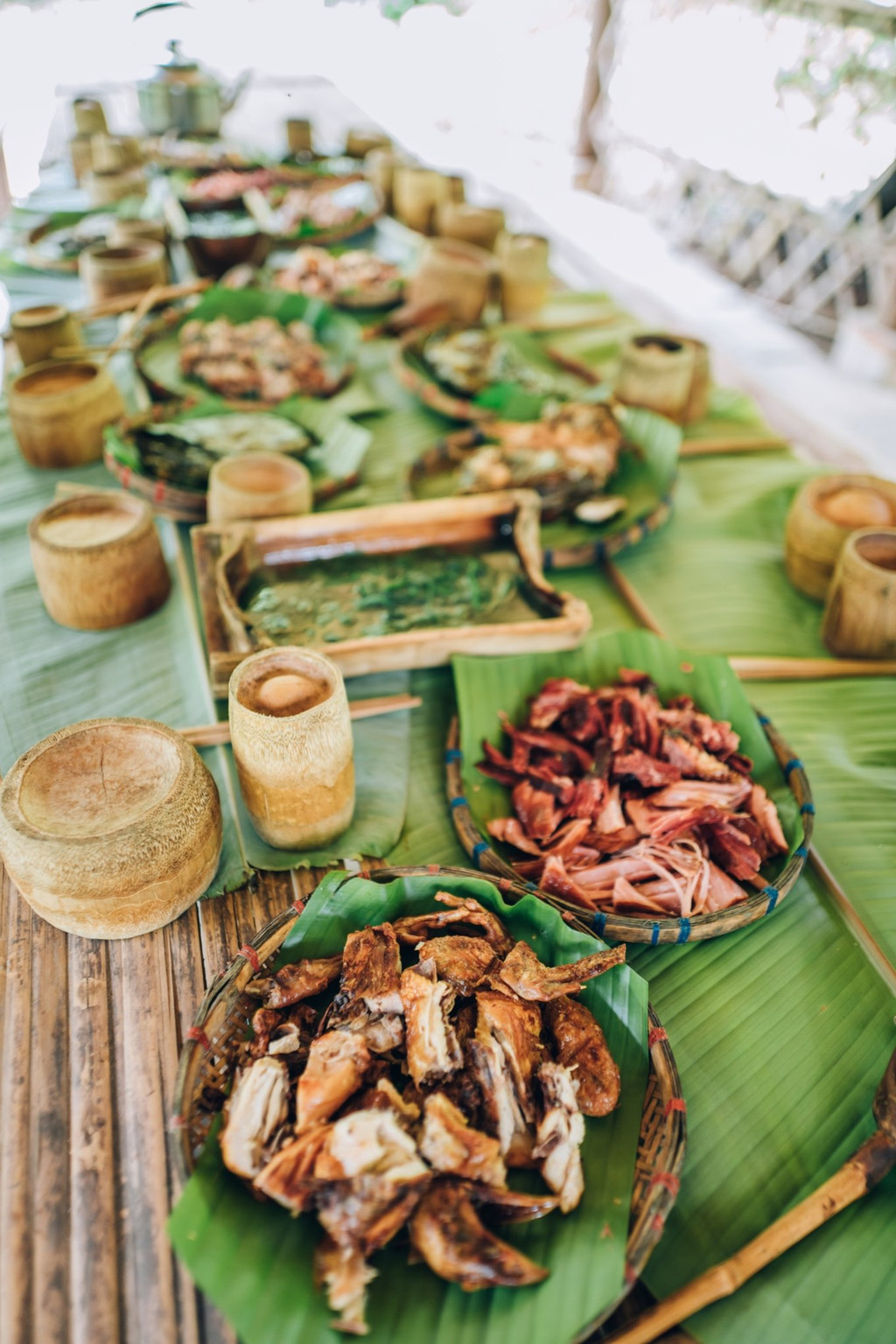 在这里我们吃到了原汁原味的傣族美食,在丛林里吃烧烤,长桌宴,每一道手工美味和都市里的快餐完全不同,竹筒饭,菠萝饭,手抓鸡,牛肉、特色粑粑吃出了自然的味道。