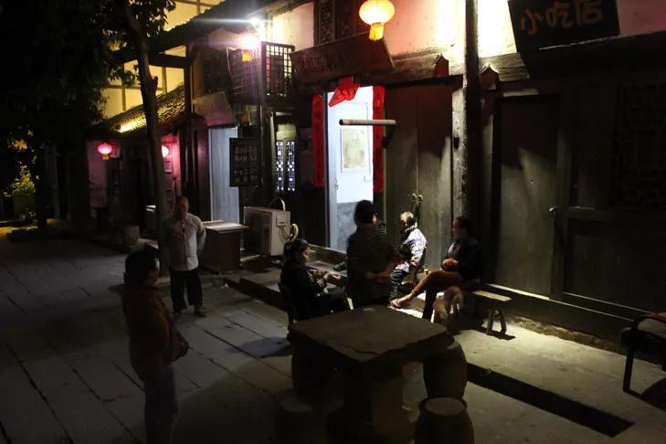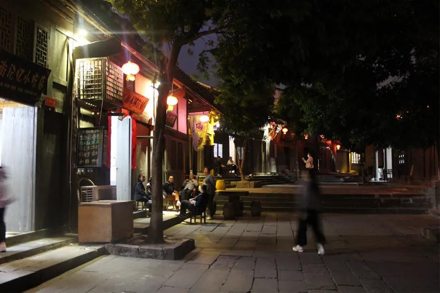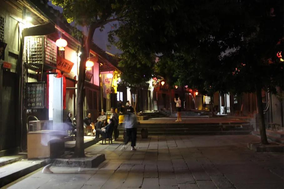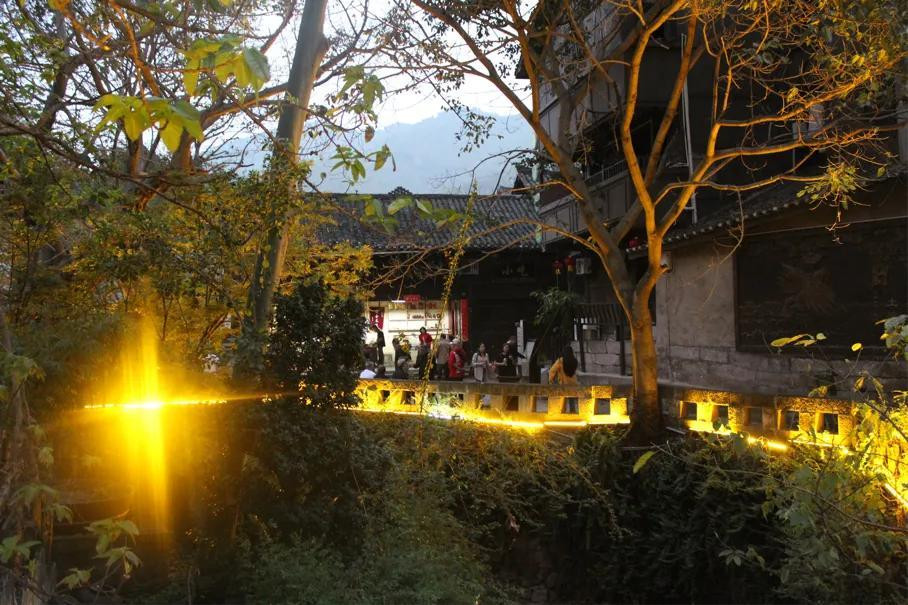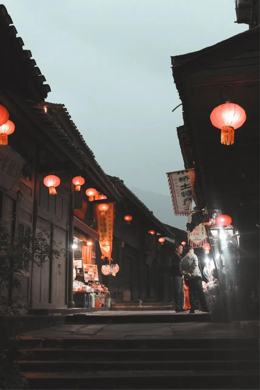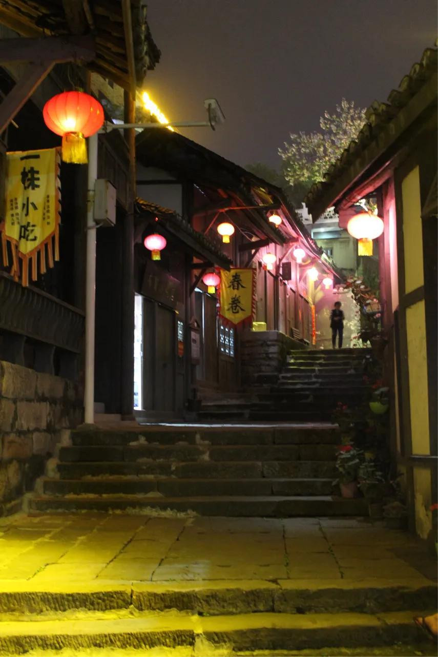 等到天黑的时候,古镇门口这的灯光开起后唤醒我童年记忆的一部老重庆经典电视剧,街坊邻居里面嘉陵巷的样子。