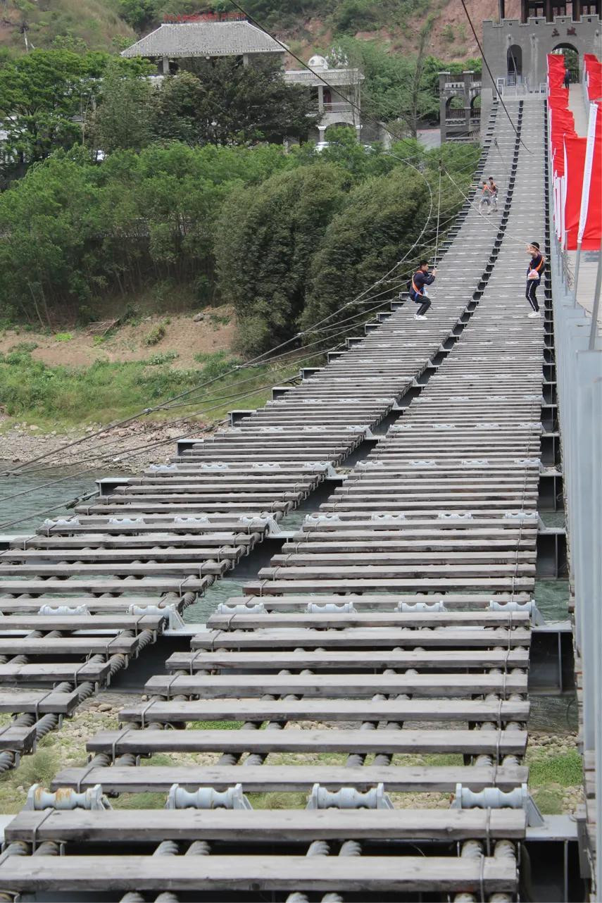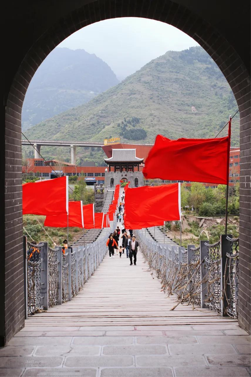此桥长193.5米,寓意1935年峥嵘岁月,1935年的1月中国工农红军长征来到土城,在土城开仓分了盐,建立了深厚的军民情谊,红军一渡赤水河时,老百性帮助红军搭建浮桥,如今在这里修建吊桥,既是为了纪念一渡赤水也是架起了一座和老百姓的连心桥。接下来继续乘车前往了丹霞谷景区