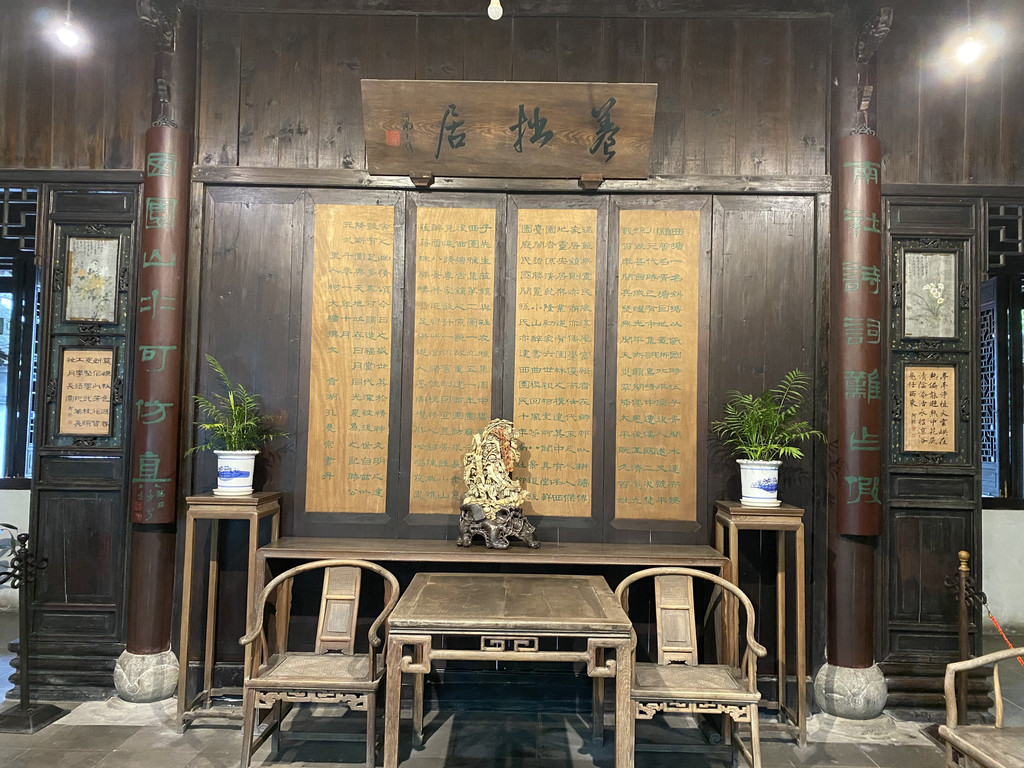 我们走得太快,西塘景区十几个打手膜景点,我们进入的仅仅是酒文化博物馆、西园两家。酒文化博物馆,坐落于西塘椿作埭,由原黄酒陈列馆改扩而成,期间贡献度最大的是刘西明先生。少小时,嘉善就以黄酒闻名,当时只知嘉善加饭,而不知西塘古镇,现在西塘嘉善排序已然换位,黄酒仅仅只是西塘加持的虚名,锦上添花而已。博物馆有关黄酒的记述不多,陈列的实物均是些钟鼎酒器,其中最著名的是“温酒冰鉴”。闲来无事,尊、壶、卮、皿、鉴、斛、瓮、瓿,有罍有觥,我们能识别的没有几样,却会来事,建议着馆内工作人员,是否学着茅台,敞开了酒盖,甚至泼洒了陈酒,让人进馆就能破鼻闻香。