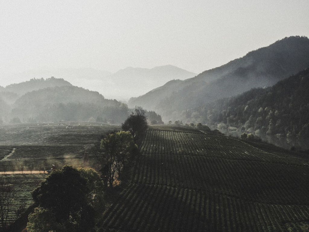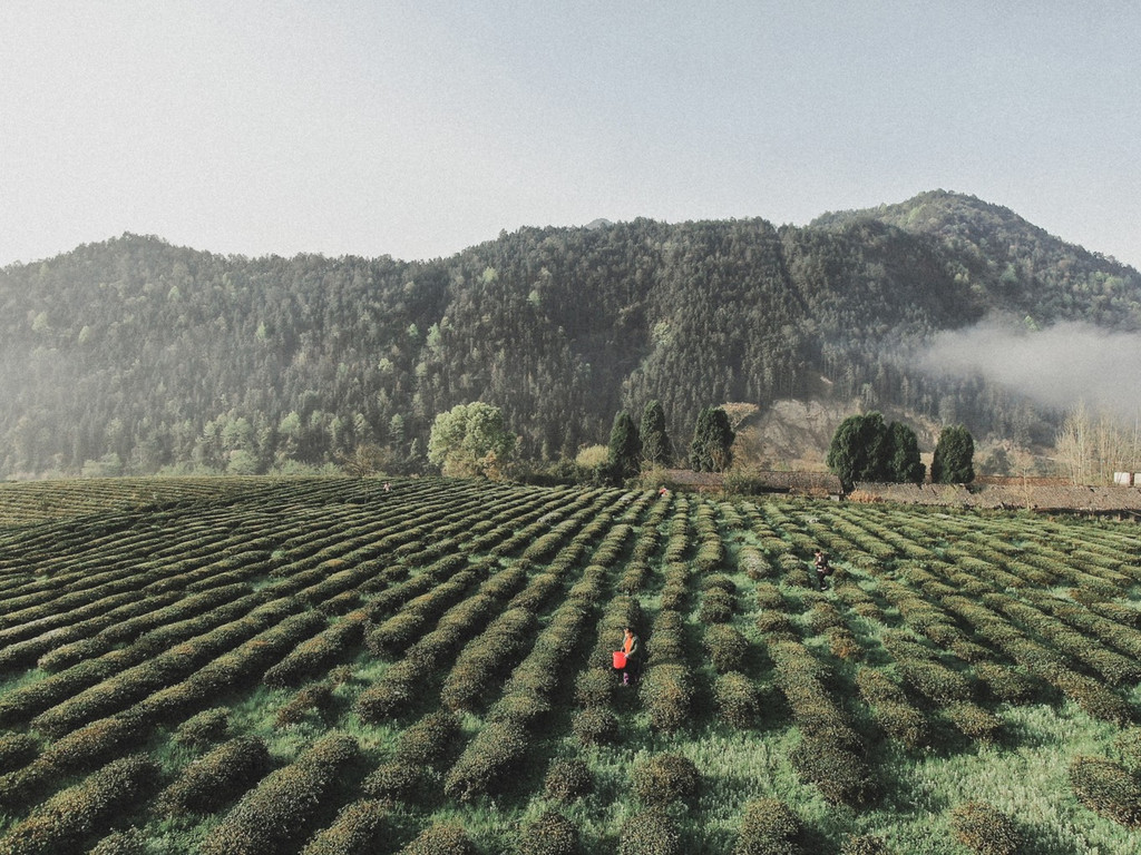 清晨就出发来到了茶田,清晨的山谷里还漂浮着一层白雾,配上这青山绿水,给人一种人间仙境的感觉。早早的就有茶农开始采茶了。