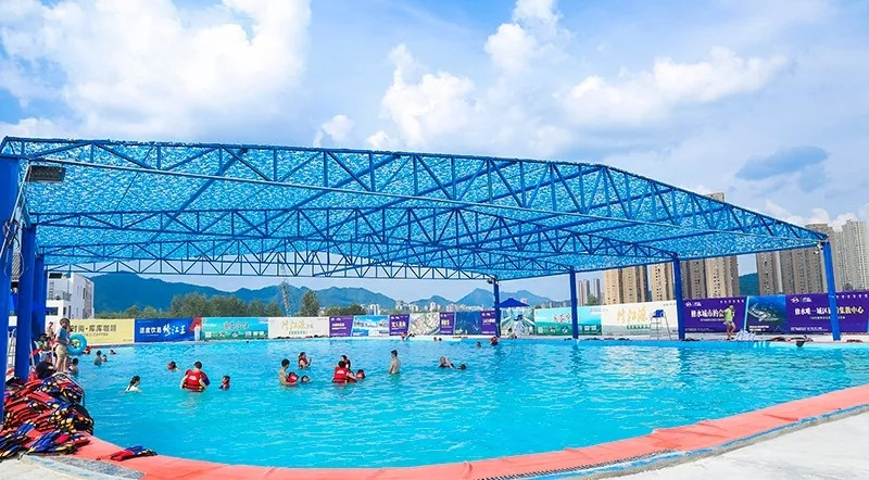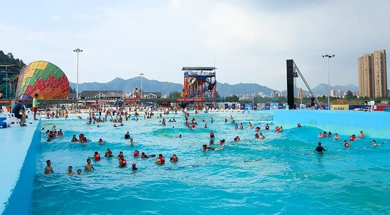 4000平大型泳池当你浸入微凉的水中瞬间让你消除闷热和浮躁让你体验一翻别具特色的玩水乐趣!