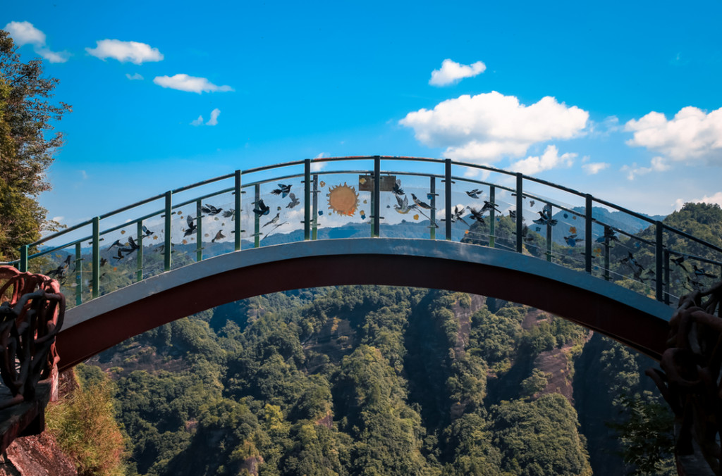 在两座山头矗立着一座鹊桥游人在背上两句台词,真似那牛郎和织女演绎的唯美故事