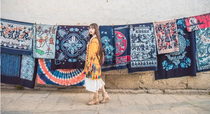 喜洲 古镇上值得一提的就是独具白族民族特色的工艺品——扎染。