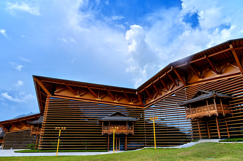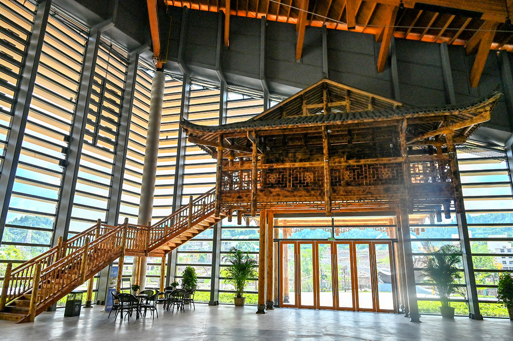 位于酉水河畔彭家寨旅游景区游客中心,是酉水河流域聚落选址的典型范式,借鉴土家吊脚楼干栏木构营造技艺,让建筑与环境和谐共生。