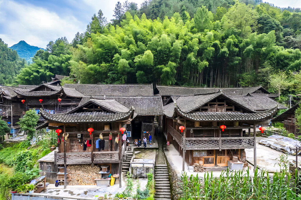 青瓦跺脊,飞檐翘角;木门花窗,雕梁画栋;穿斗结构,榫卯相连,古朴又灵动,有着极高的民族文化、建筑艺术研究价值。