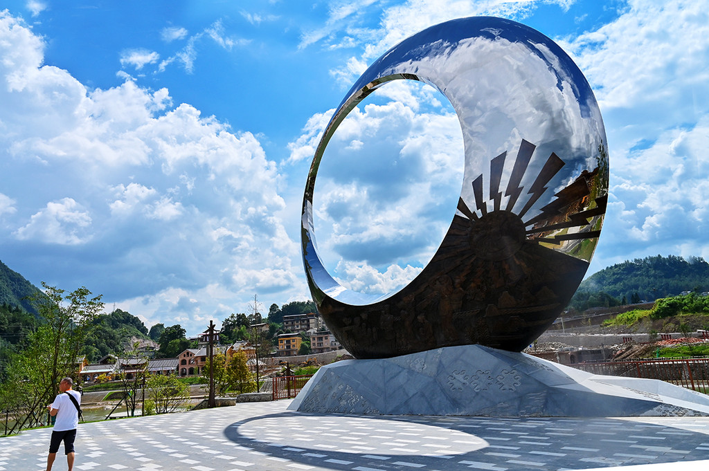“男人抱月亮,女人喊太阳”。土家族人对月亮有着特殊的感情。酉水明月雕塑不仅体现出现代艺术风格之美,还有“朗朗明月照耀进酉水河千家万户,保佑酉水河流域百姓风调雨顺,百业兴旺,幸福万年长“的美好寓意。