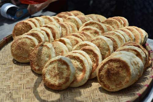 鄢陵高炉烧饼高炉烧饼是将烧饼快速准确地贴在吊炉顶部的高炉上,使烧饼在炉内高温的烘烤下慢慢成熟。河南很多地区都有制作高炉烧饼的手艺,但每个地方的高炉烧饼又各有其特色。鄢陵高炉烧饼焦黄酥脆,上面密密麻麻地粘着一层芝麻,入口酥香,令人垂涎欲滴。