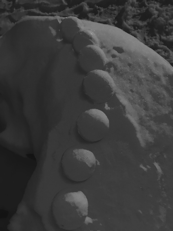 雪很松软,很难定型,父子俩人满院子找工具,好容易堆起个雪人
