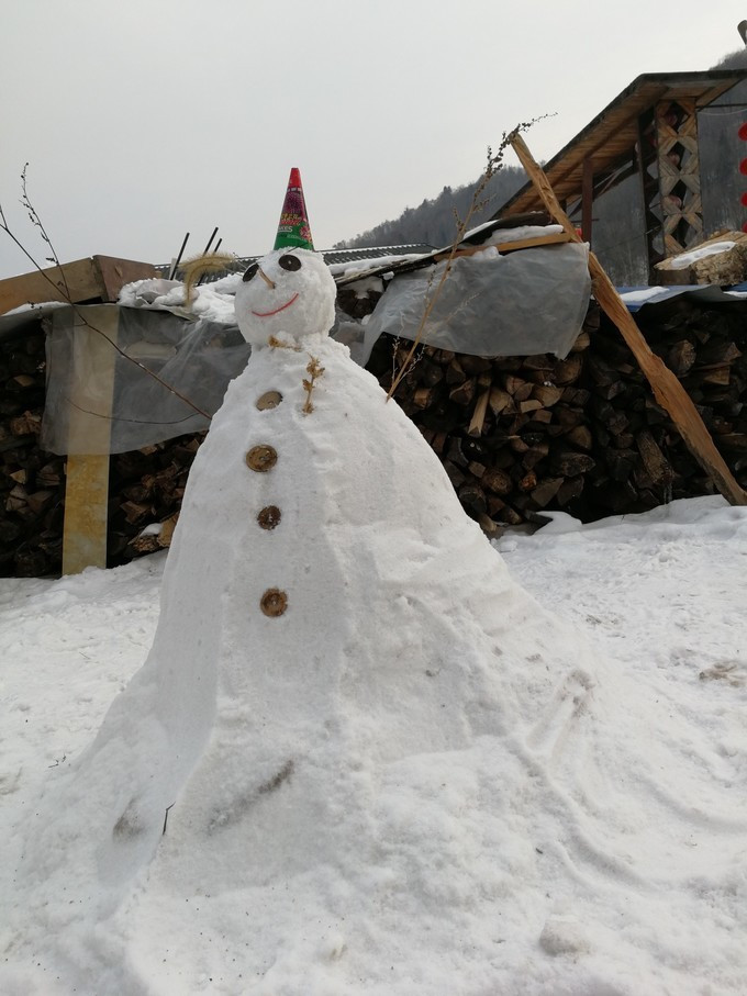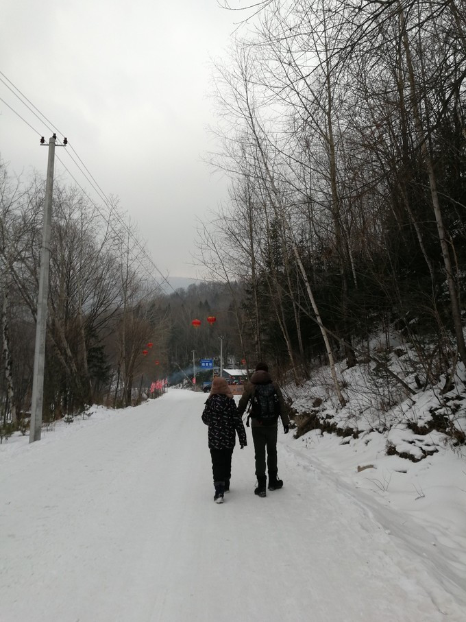 雪人堆好了,也闻到饭香了。一个猪肉炖粉条、一个韭菜炒鸡蛋,一个汤,分量很足,我们居然没有吃完。午饭后休息了一下,我们准备去雪谷的滑雪场玩,不远(离孟祥兰客栈步行不到1公里),可以请祥兰姐安排车来接,也可以自己走过去。如果不想去滑雪场,民宿背后的小山上也可以玩,我看到有一家人带着小朋友在山坡上玩雪漂。因为后面没有安排去 亚布力 的行程,所以我们决定去滑雪场玩,