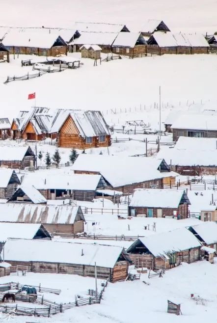 村里的房子是图瓦人居住的尖顶小木屋,房顶积着厚厚的雪,让整个村庄变成了一片雪色的世界,这里被称为新疆的“雪乡”。住在村子边缘,拉开窗帘,就是一幅绝美的雪景,白色的雪地上散落着银灰色的白桦树,偶尔一阵风吹过,吹落树上的几片雪,飘啊飘啊慢慢落在雪地上,融入白色的雪世界。