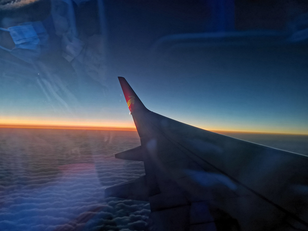舷窗外的风景,惹得大家一阵激动,万米高空下的一抹亮丽的金黄色,给这趟旅程开了个好头!
