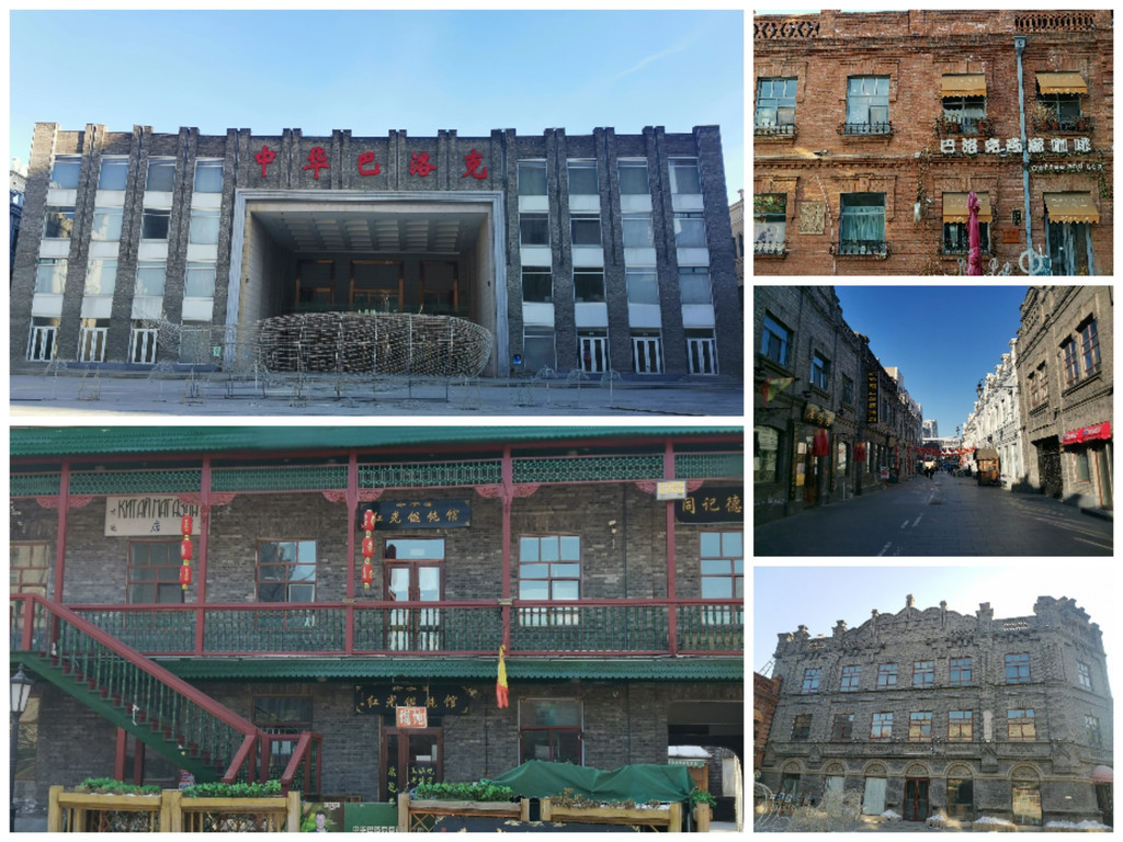 顺着导航,沿着并不新净的道路,逛到了老道外巴洛克。其实就是一块相关风格的建筑群,大部分的店家还没有开始营业,都是景区常见的店。