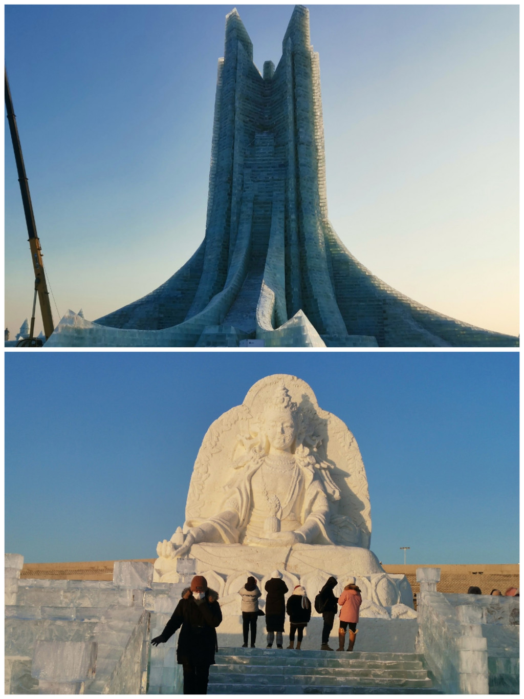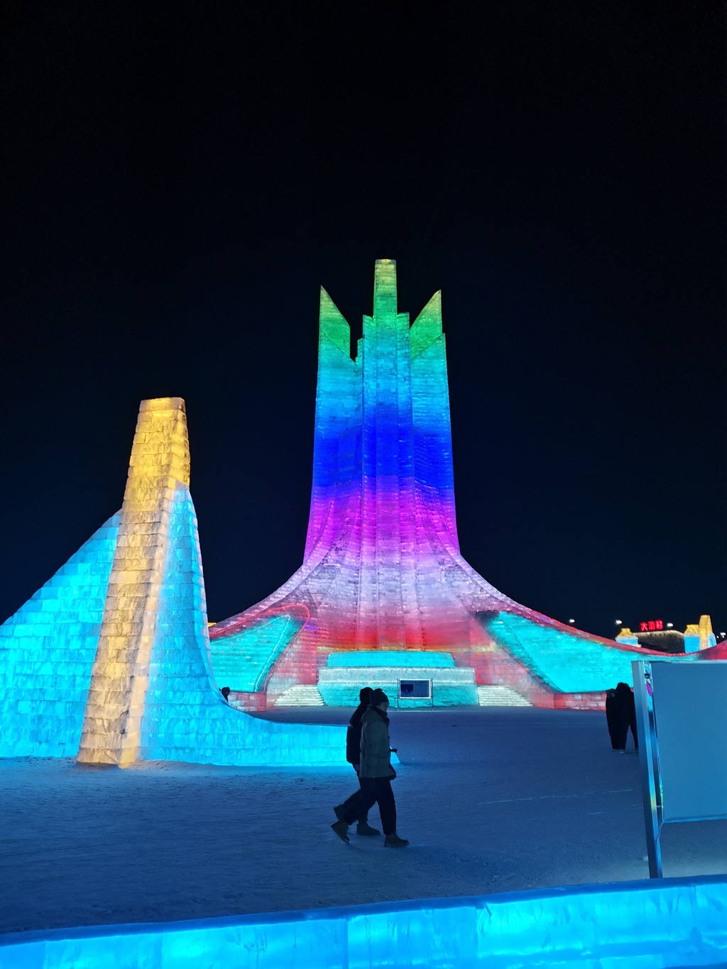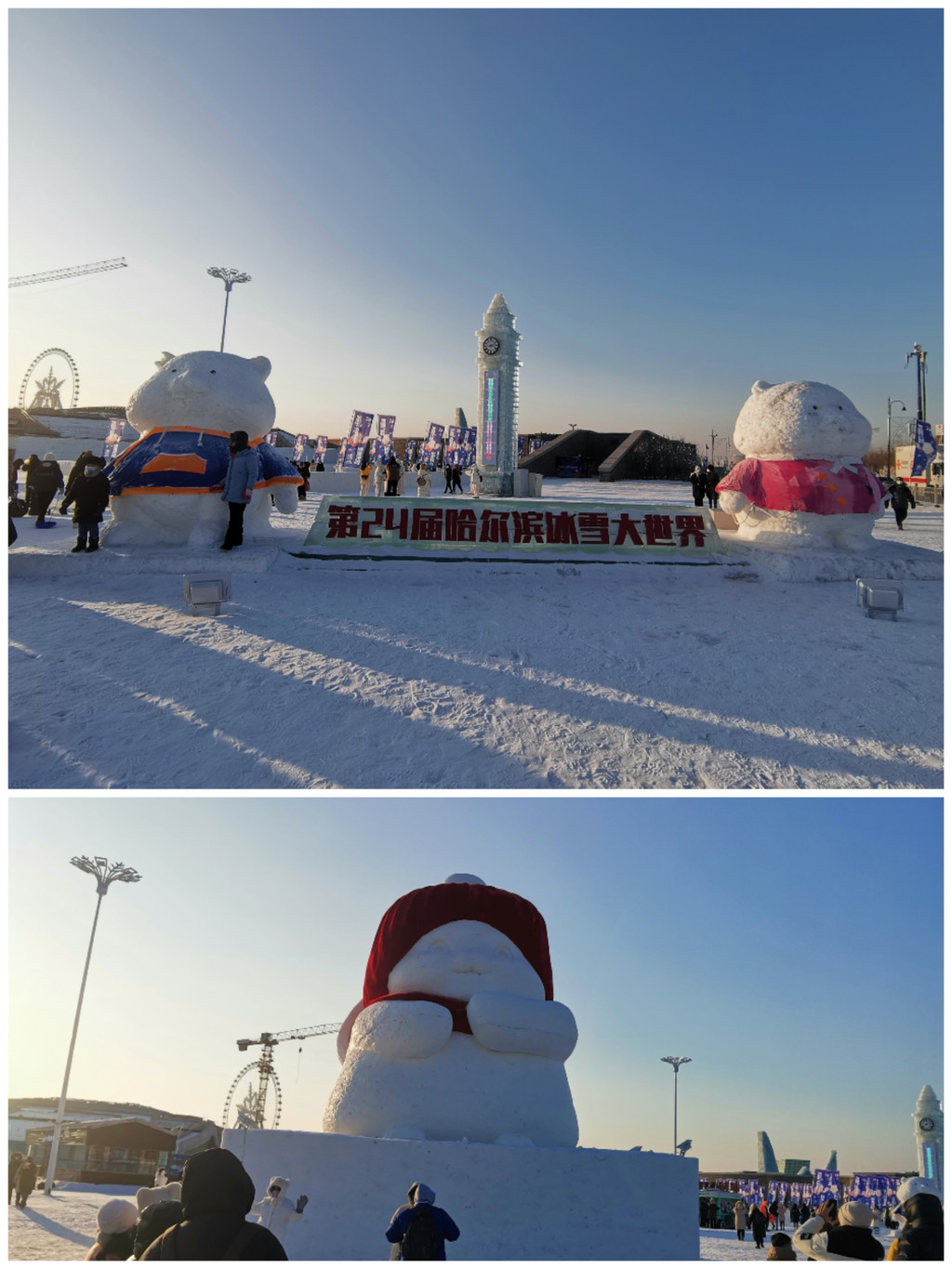 冰雪大世界入口的雪雕,应该是我见过最大的雪雕了。脚下的雪❄️都被踩的结结实实的变成了滑滑的冰,不断有行人劈大叉!