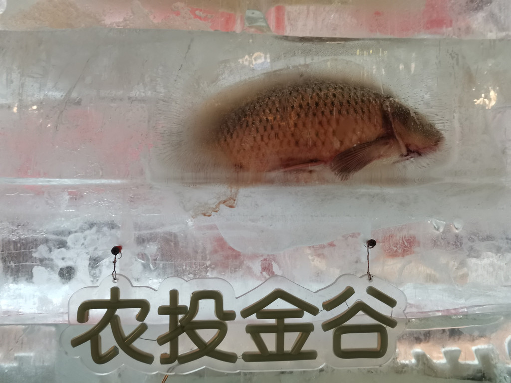 这是一个餐厅门口的冰墙里冻进去的鱼,怎么说呢?东北人真会玩!