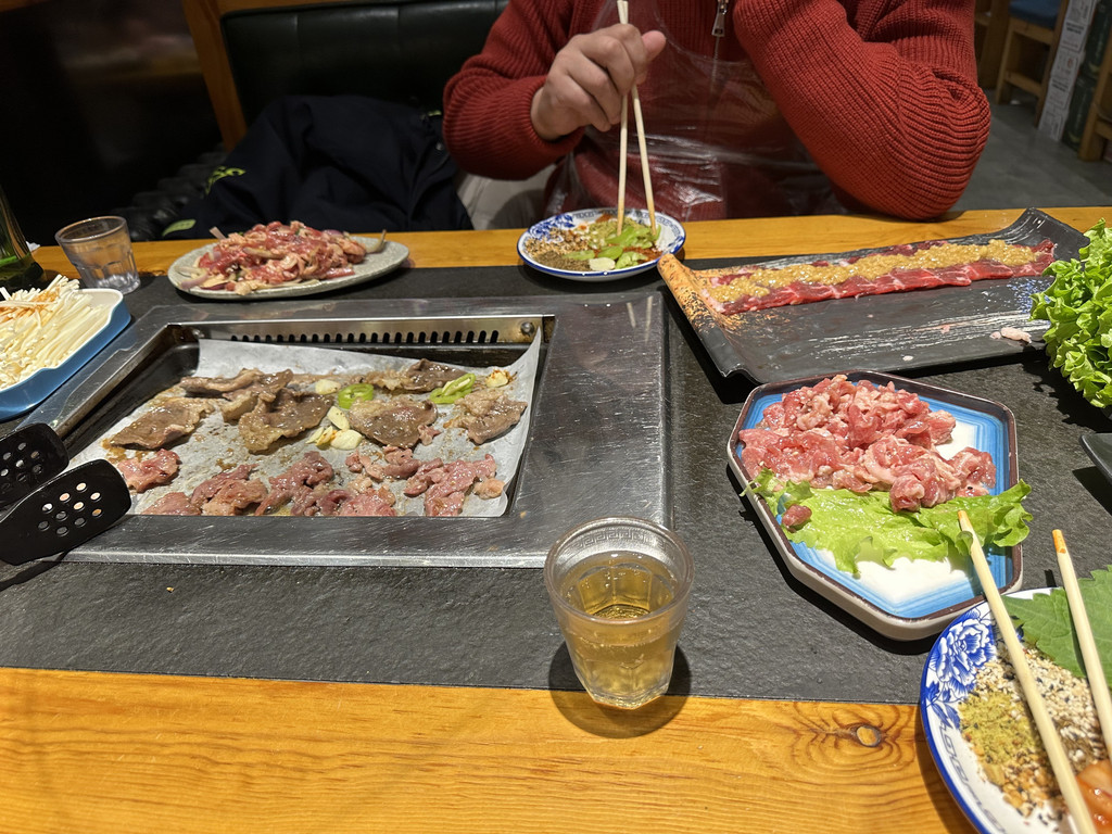 今天发现宾馆旁边有一家烤肉店,是齐市烤肉,网上评价还不错,团的套餐很实惠,还送了冻梨切盘。