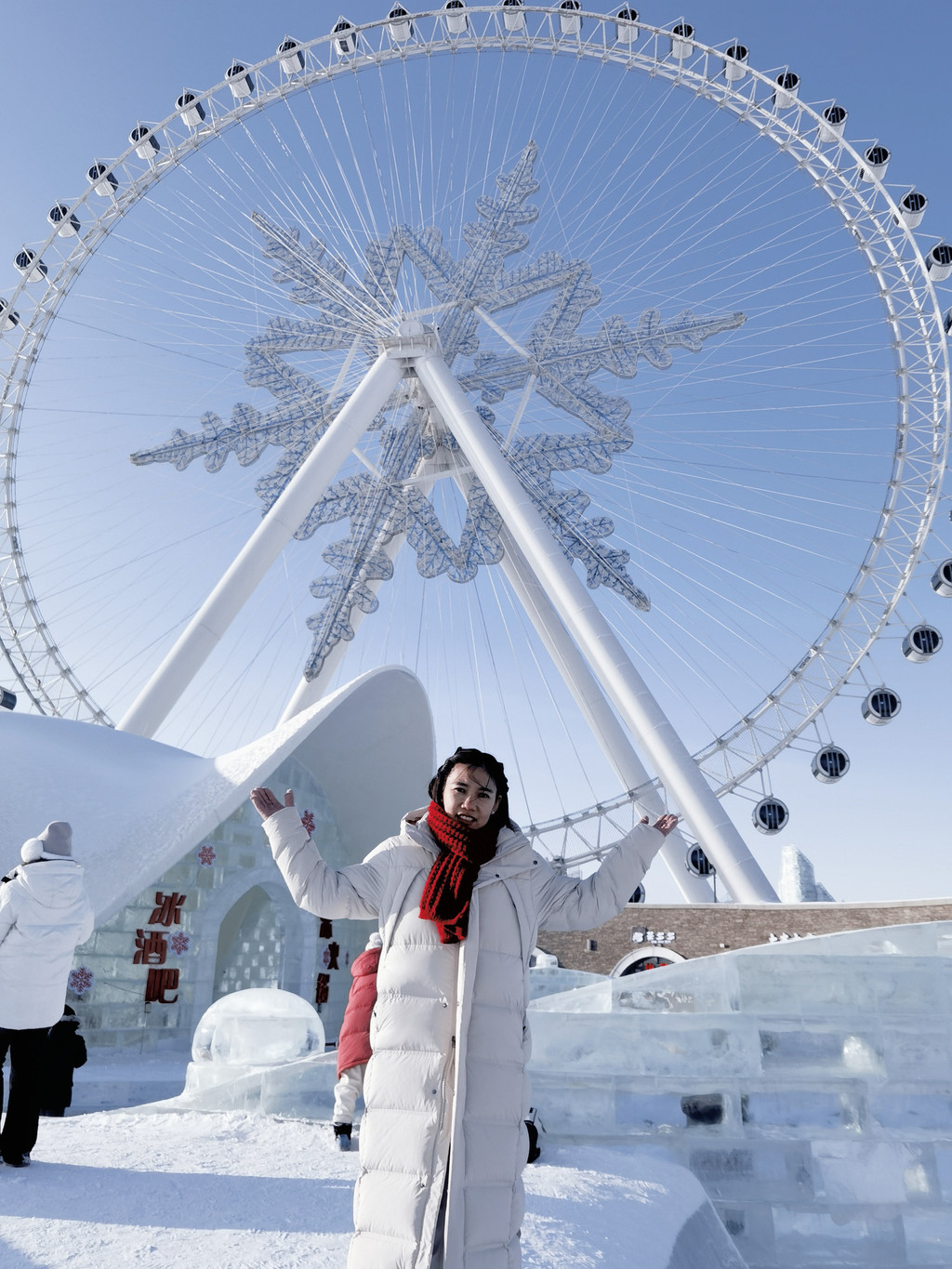 ,所以在双十一活动时就在准备御寒的羽绒服,我是特别怕冷的人,这次真的是在挑战极限。因为去新疆的费用会比较高,路费就要占大部分,东北交通比较便利所以费用会少一些,但是没想到今年的哈尔滨会如此火爆,让我有点望而却步,但是每次刷到哈尔滨的视频,又想去体验一下,所以最终确定等孩子放假立刻出发去哈尔滨。