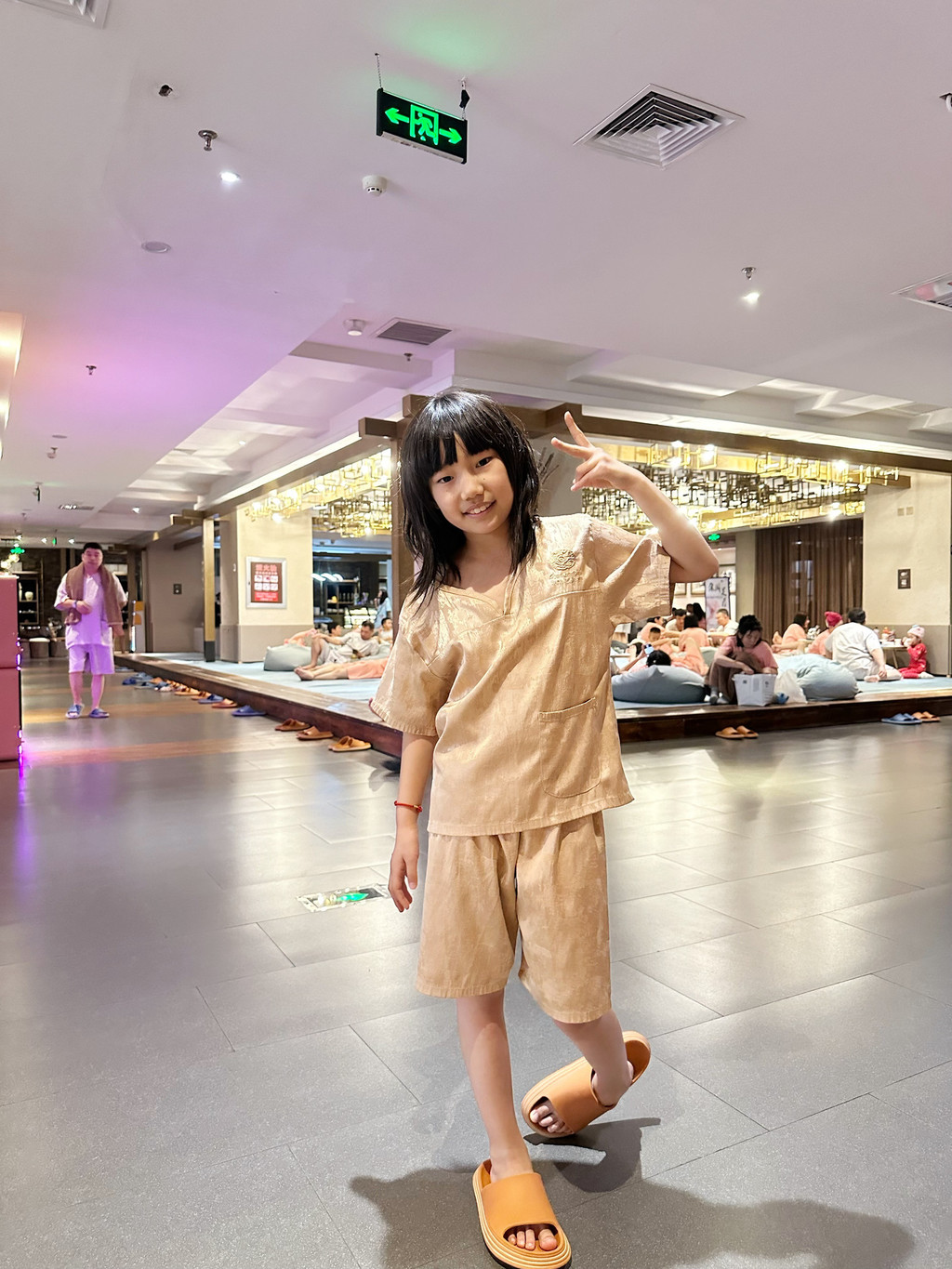第一次在洗浴中心搓澡,选择的奶搓,大姨搓的非常细致,搓完感觉一身轻松。重头戏是晚上的自助,提前去排队等位,菜品非常丰富,海鲜种类也很多,只不过没吃多少就吃不动了。晚饭后和闺女泡了会室外温泉,看时间差不多换好衣服直接打车去了火车站,三个人洗浴花费566。