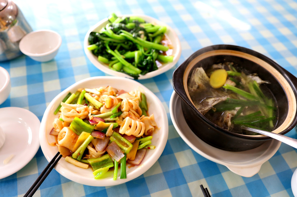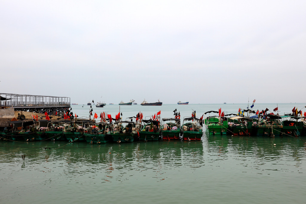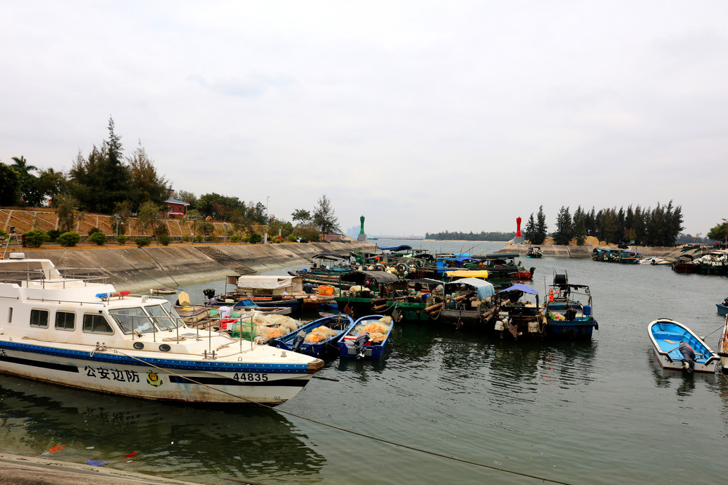 硇洲岛总面积56平方公里,很快我们又回到了码头,码头上整齐地排列着很多小渔船,旁边就卖刚打上的鱼虾蟹,会比外边便宜不少。 硇洲岛盛产名闻世界的硇洲鲍鱼、青龙虾等名贵水产,可能是我们来的时间不对,没看见这两样东西,也就没口福了,码头这里也是硇洲岛商店最集中处,趁着回去候船时间,在正对码头的一家小饭店吃个晚中饭,在这里海鲜的做法很简单,新鲜程度是首位,而当地人最喜欢用各种海中的小杂鱼做的汤让我们回味无穷。