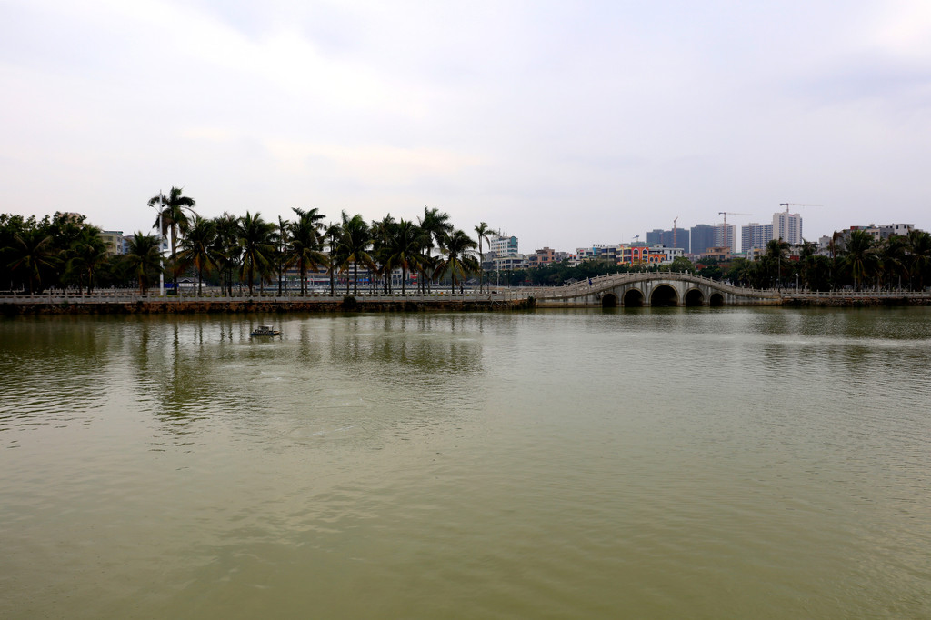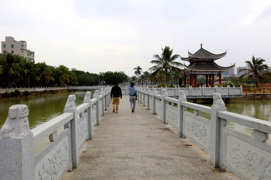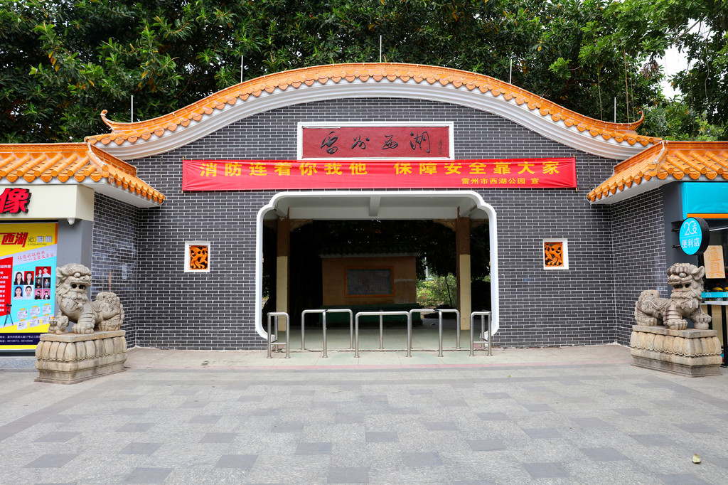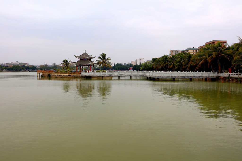 吃过午饭我们顺路游雷州西湖, “天下西湖三十六,东坡到处有西湖”,这雷州西湖原名罗湖,自从大文豪苏轼兄弟在此醉游之后,雷州人为了纪念苏公,将罗湖更名为西湖,并筑亭追念,古代中国,岭南已是蛮荒之境,而雷州半岛更是皇帝贬谪名人异士的终极流亡地,除了苏轼、苏辙,寇准、秦观等宋代名臣也都到过这里,西湖畔还有纪念他们的十贤堂,雷州人对来过的名士,哪怕只是短暂的停留,都铭记于心,其中部分人对雷州的发展确实做了不少的贡献,我们在南国暖阳中漫步雷州西湖,看湖面波光潋滟,观飞鸟曼舞落叶无声,品味一步一景步移景换的美好……这雷州西湖面积很小,门票免费,其实也没法收费,因为小小的湖就位于雷州市中心,站在人来车往的马路上整个西湖一目瞭了,不过因为有了这西湖,让这座偏远小城变得更加文艺了。