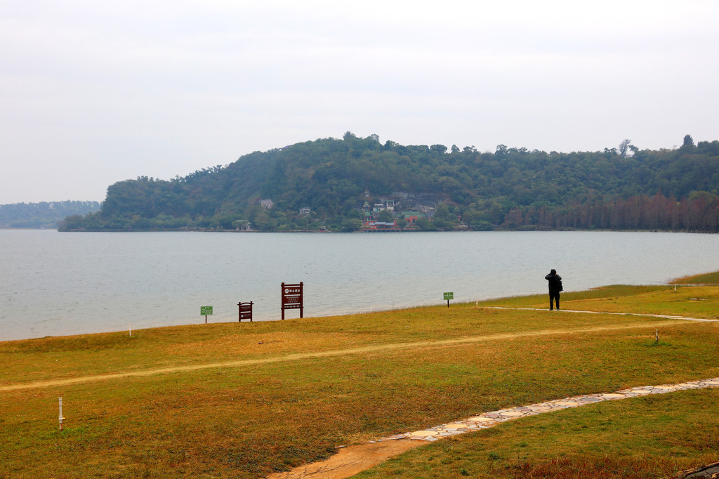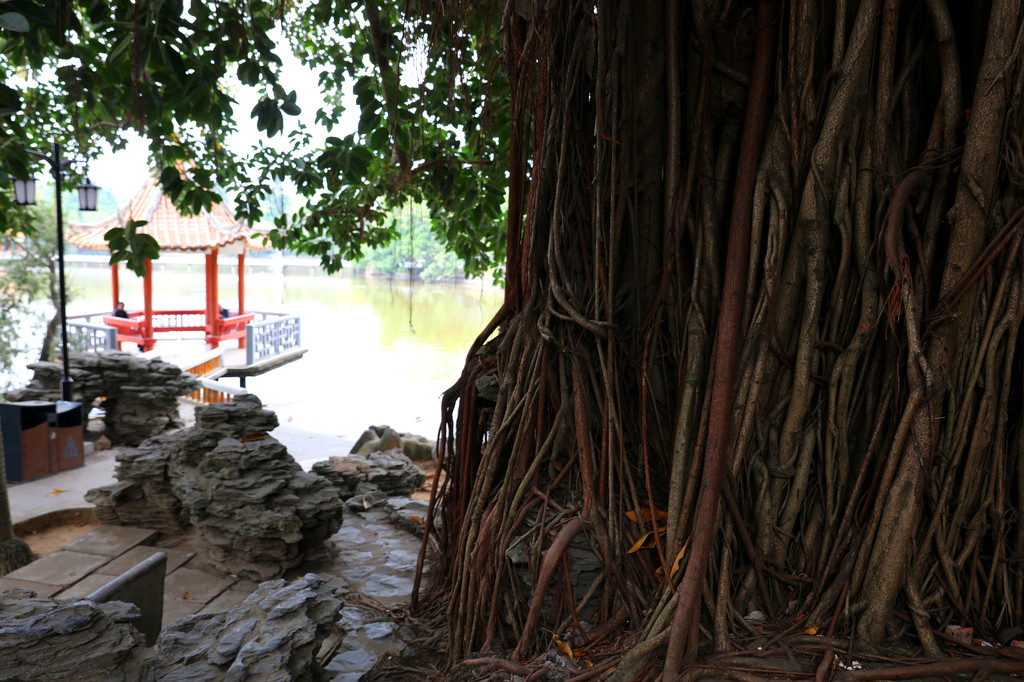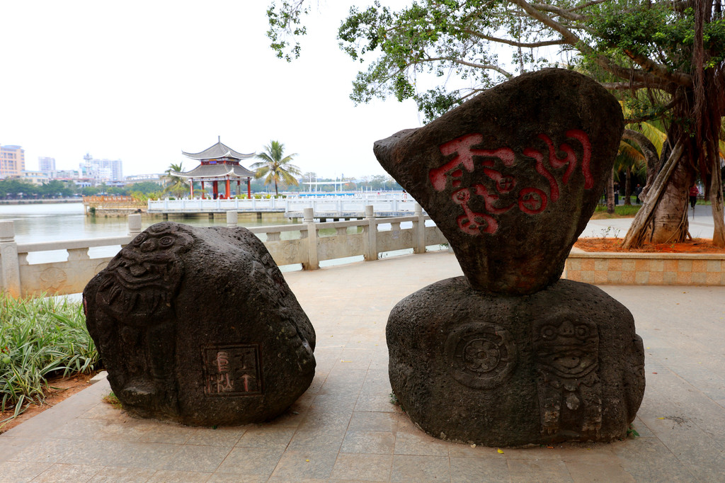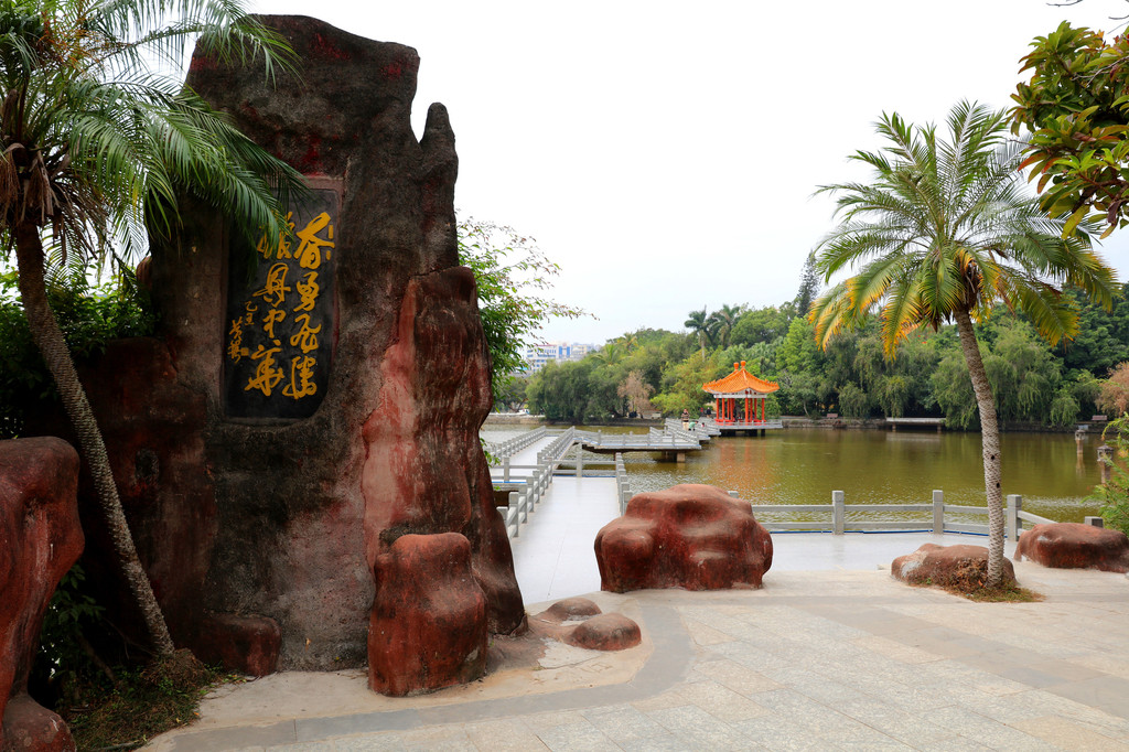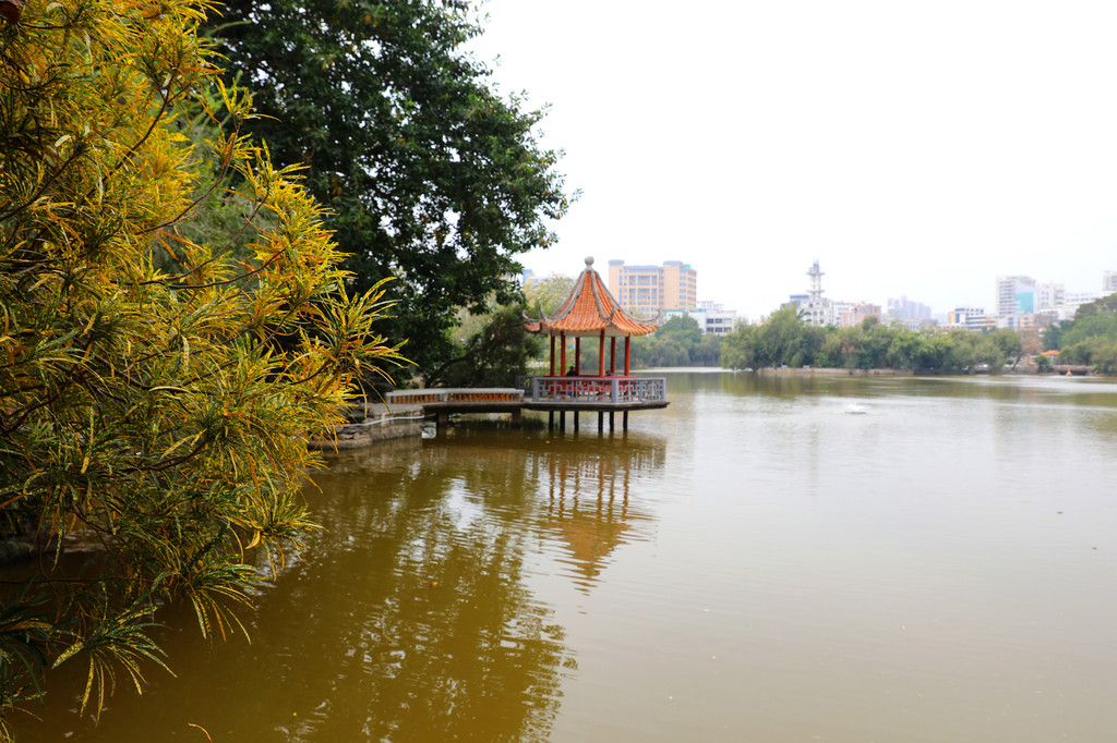 吃过午饭我们顺路游雷州西湖, “天下西湖三十六,东坡到处有西湖”,这雷州西湖原名罗湖,自从大文豪苏轼兄弟在此醉游之后,雷州人为了纪念苏公,将罗湖更名为西湖,并筑亭追念,古代中国,岭南已是蛮荒之境,而雷州半岛更是皇帝贬谪名人异士的终极流亡地,除了苏轼、苏辙,寇准、秦观等宋代名臣也都到过这里,西湖畔还有纪念他们的十贤堂,雷州人对来过的名士,哪怕只是短暂的停留,都铭记于心,其中部分人对雷州的发展确实做了不少的贡献,我们在南国暖阳中漫步雷州西湖,看湖面波光潋滟,观飞鸟曼舞落叶无声,品味一步一景步移景换的美好……这雷州西湖面积很小,门票免费,其实也没法收费,因为小小的湖就位于雷州市中心,站在人来车往的马路上整个西湖一目瞭了,不过因为有了这西湖,让这座偏远小城变得更加文艺了。
