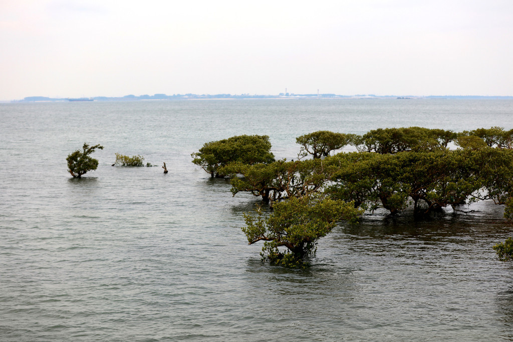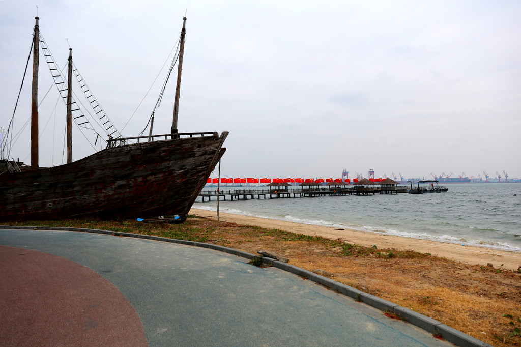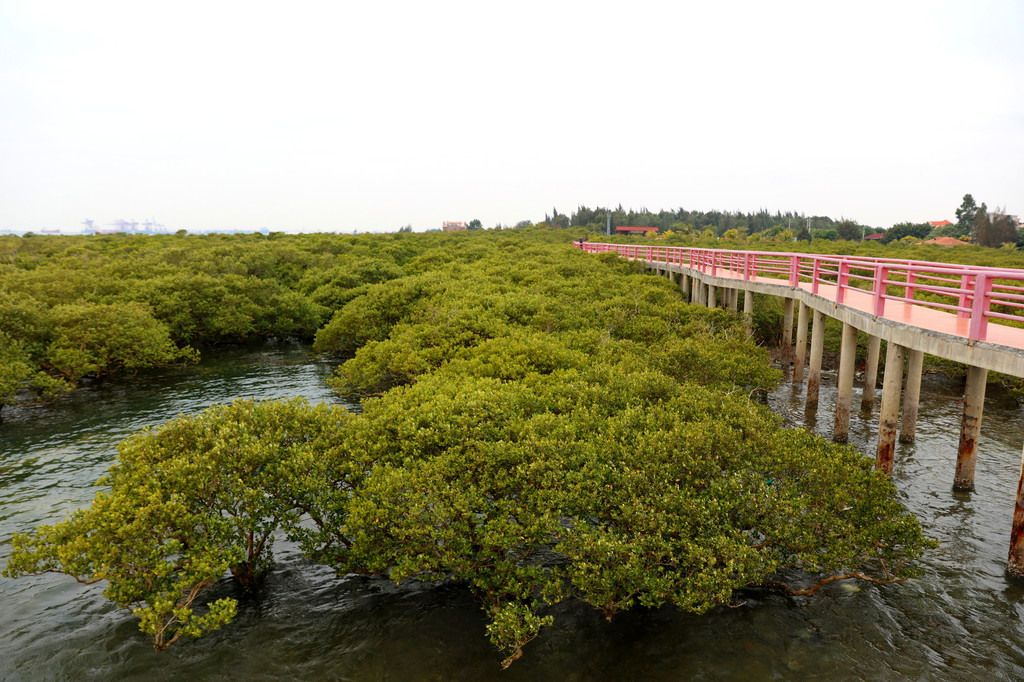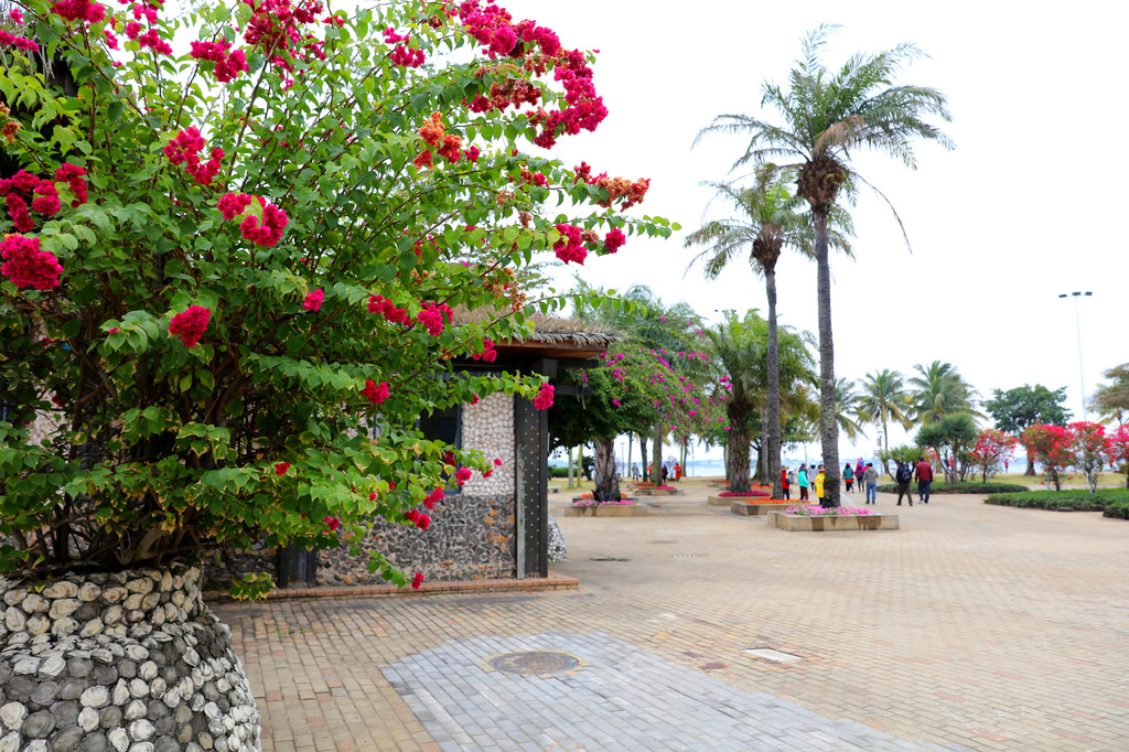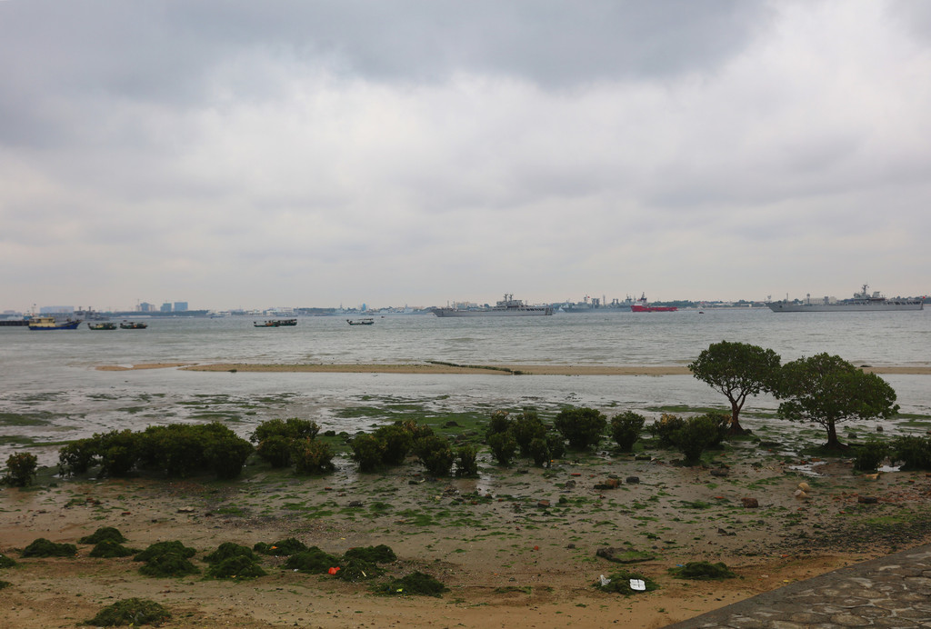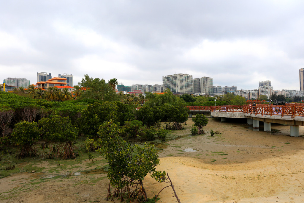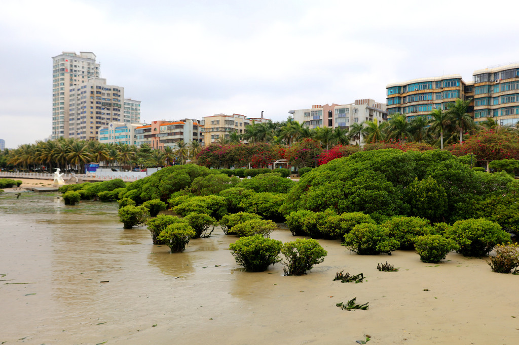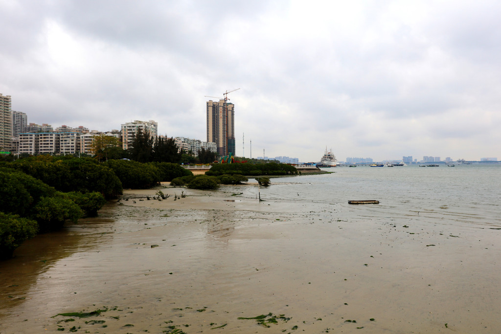 湛江是中国大陆的最南端,历史课本中丝绸之路标记的必经之路,南濒南海隔琼州海峡,与海南省相望,西临北部湾,是中国海岸线最长的市,占广东海岸线的46%。 湛江市区则占据着很长一段海湾,这里以前叫广州湾,1899年法国租借时取的名,1943年广州湾为日军占领。1945年抗战胜利,广州湾回归,从此定名为湛江。湛江市区观海的景点由北向南分别为金沙湾观海长廊 、渔港公园 、霞山观海长廊 、海滨公园和渔人码头。我们今天打卡湛江从霞山观海长廊开始。最先看到的是绵延秀美的海滨沙滩,景区自西向东分为人文景观展示区、沙滩亲水活动区、中心广场景区、生态之旅景区,长廊上鸟语花香,树林繁茂,红色的红叶草,黄色的假花生,绿色的草坪等大色块植物带纵横交错,凤凰木、木棉、大花紫薇等大型开花乔木花团锦簇,全面展示了湛江迷人的南国海滨风情。霞山观海长廊这一段最大的看点是一片又一片的红树林,好比城中有林,林中有城,生态环境优美。湛江湾是一个天然良港,南海舰队就驻扎在这里,从霞山观海长廊可清楚地看见海湾对面十里军港中停泊的军舰雄姿,军事迷如来这里一定会感兴趣。