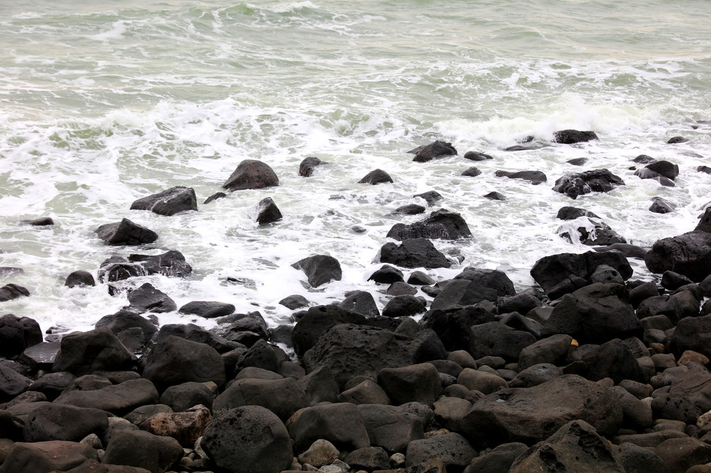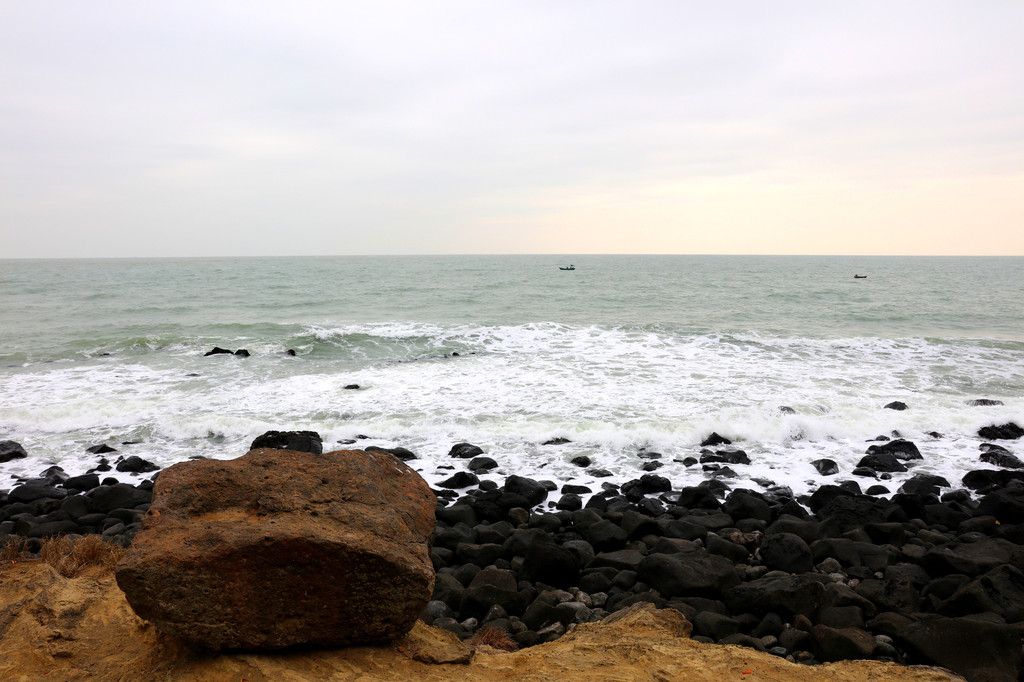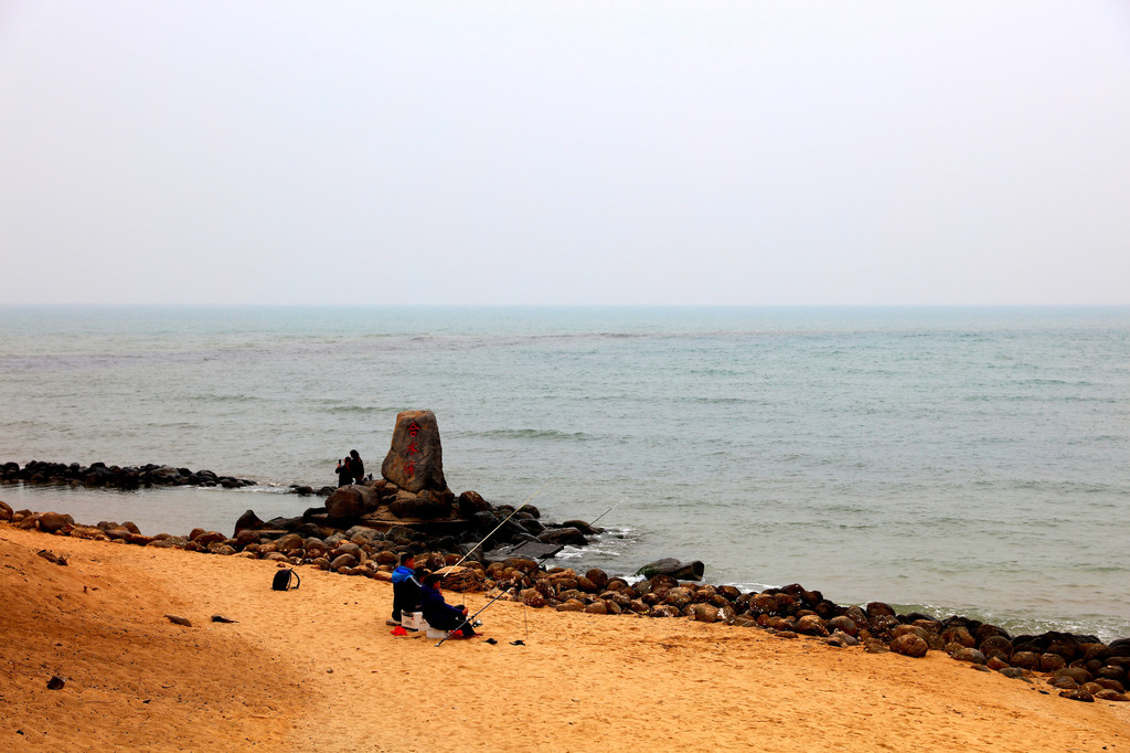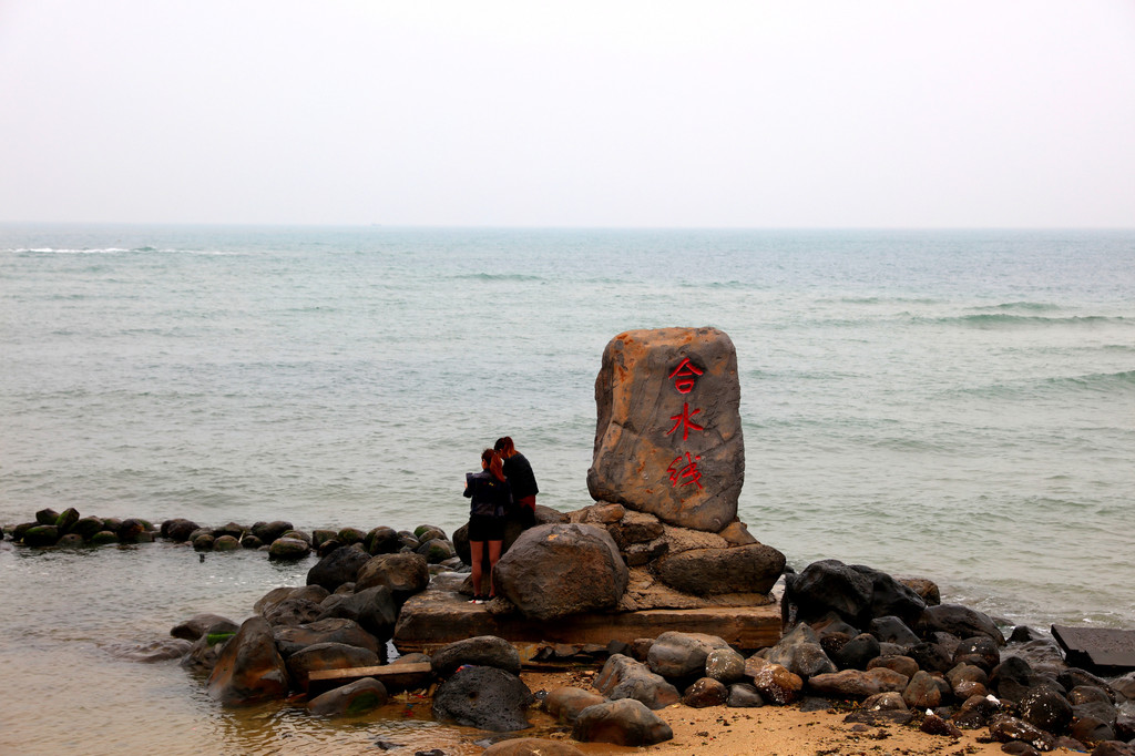 这里海边还有一块大石头上写有分水线三个字,这是南海与北部湾的分水线,时而可见若隐若现的尖沙洲,属南海的琼州海峡潮流自东向西,北部湾潮流自北向南在此汇合拥抱,如果遇到波涛汹涌的时候,两个海区海水会形成V字浪,也叫“接吻浪”,令人叹为观止。目前这里估计因交通不便,除了不多的自驾游客外,游人不多,显得非常安静。